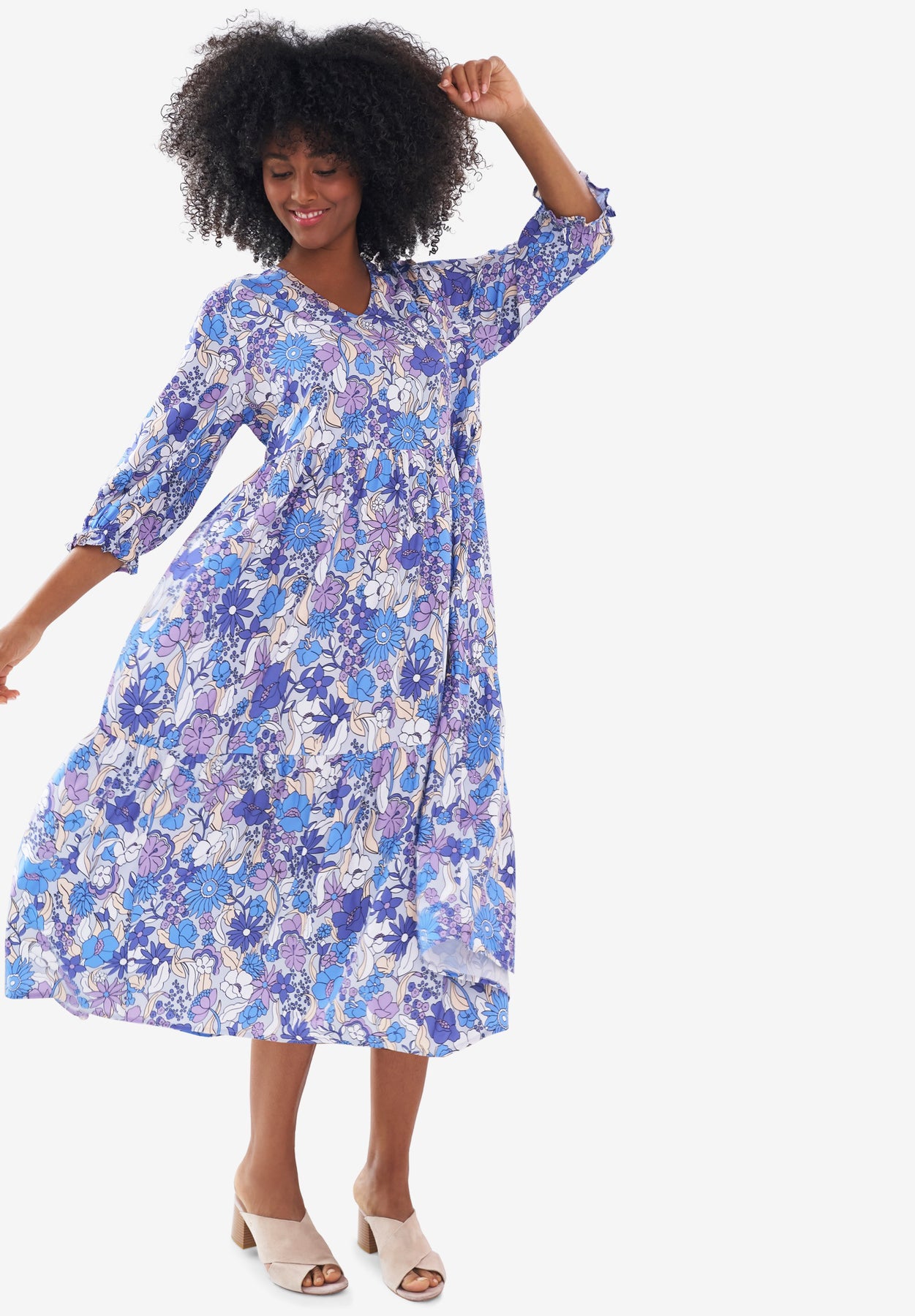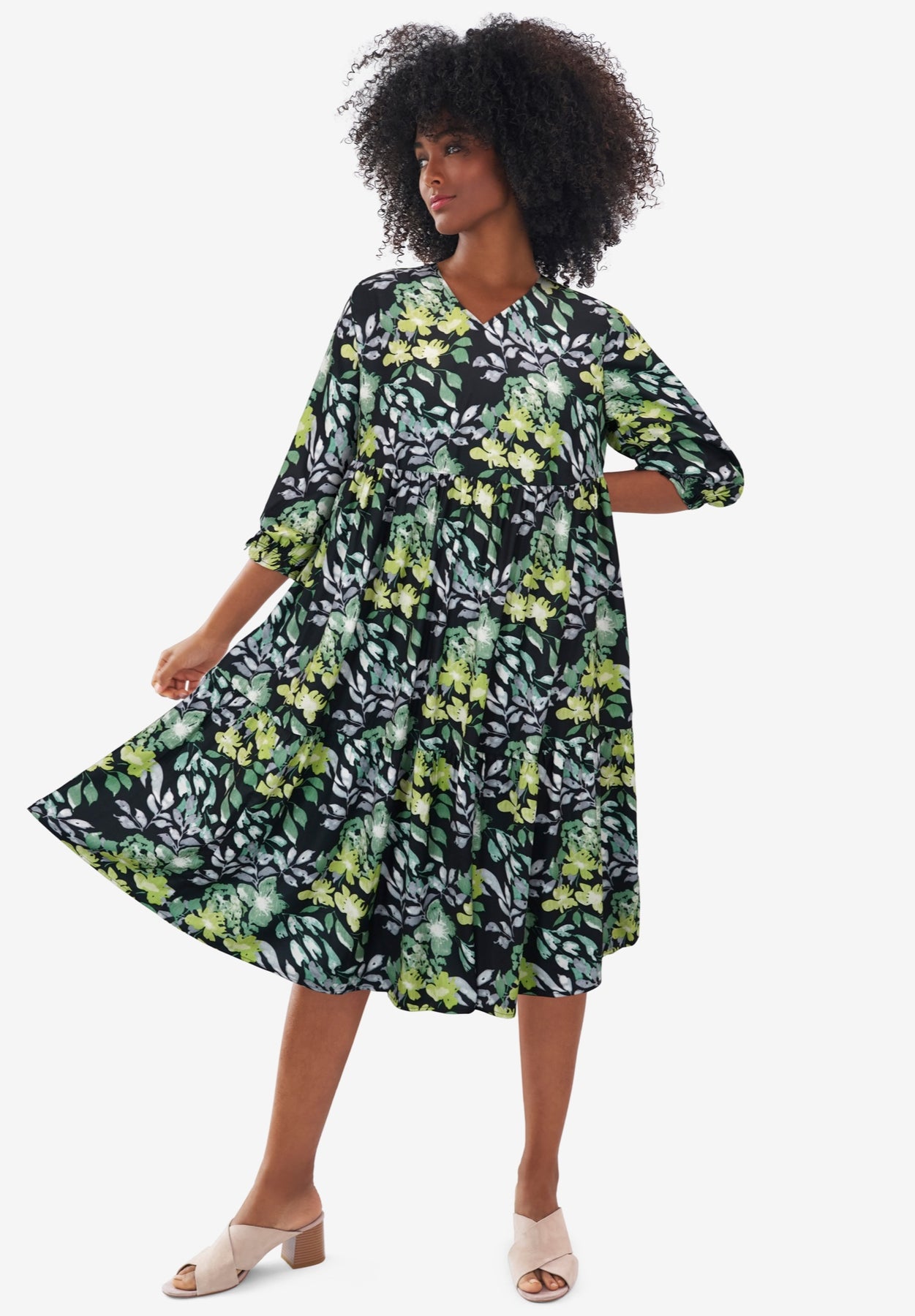V-Neck Tiered Midi Dress