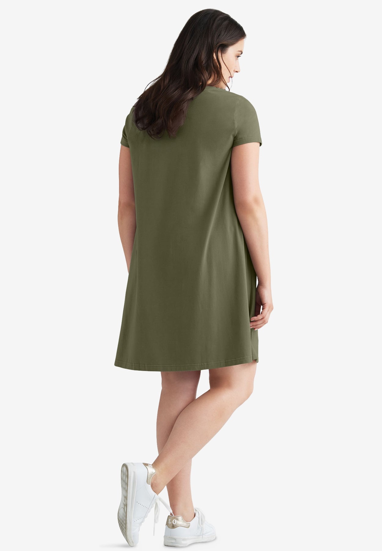 Cotton Spandex Scoop Neck Short Sleeve A Line Tee Dress | ellos