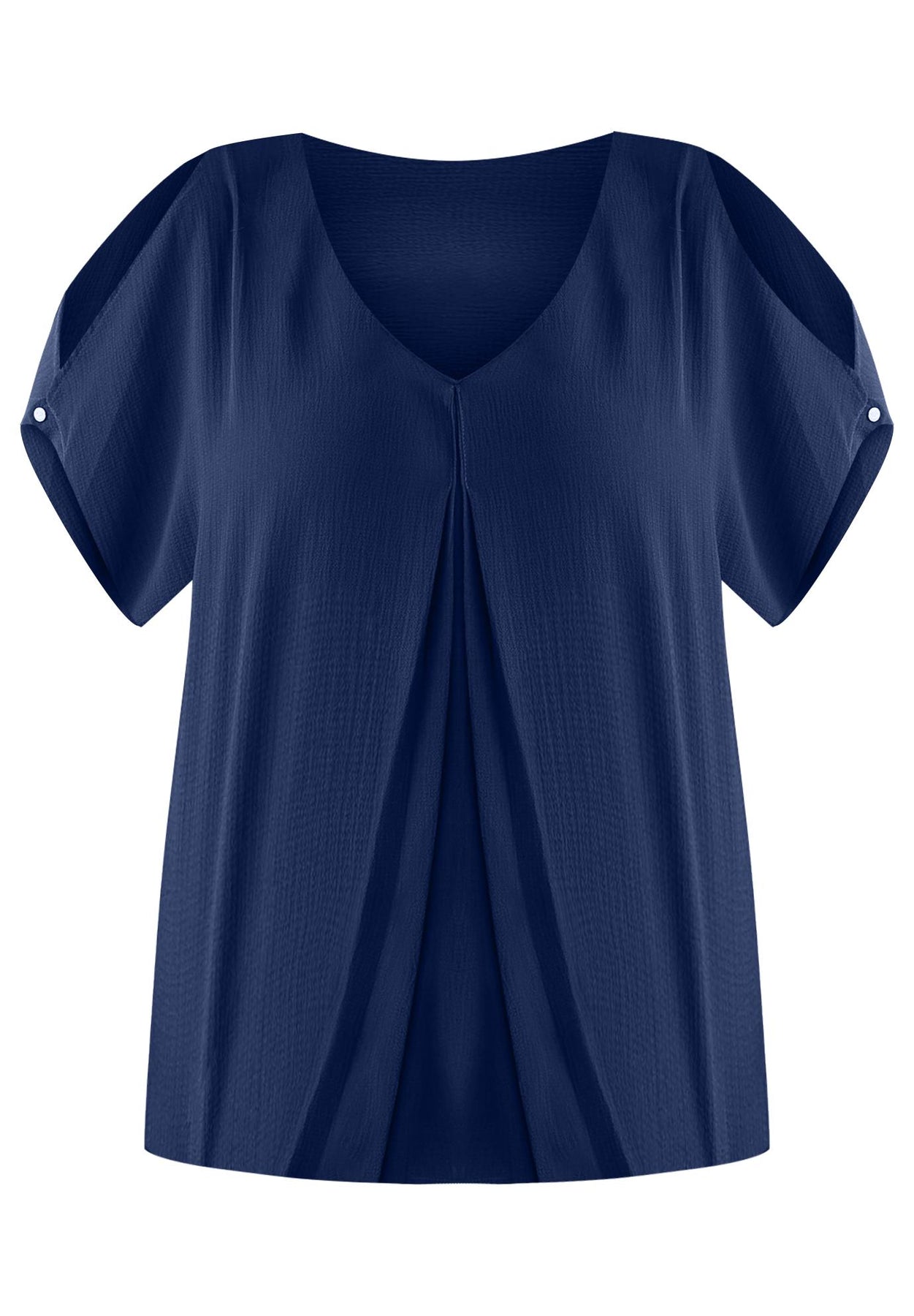 Pretty inverted pleats at the V-neckline & dolman slit sleeves infuse feminine touches to this blouse. Pair it with our distressed skinny jeans & kitten heels for a great night-out look.