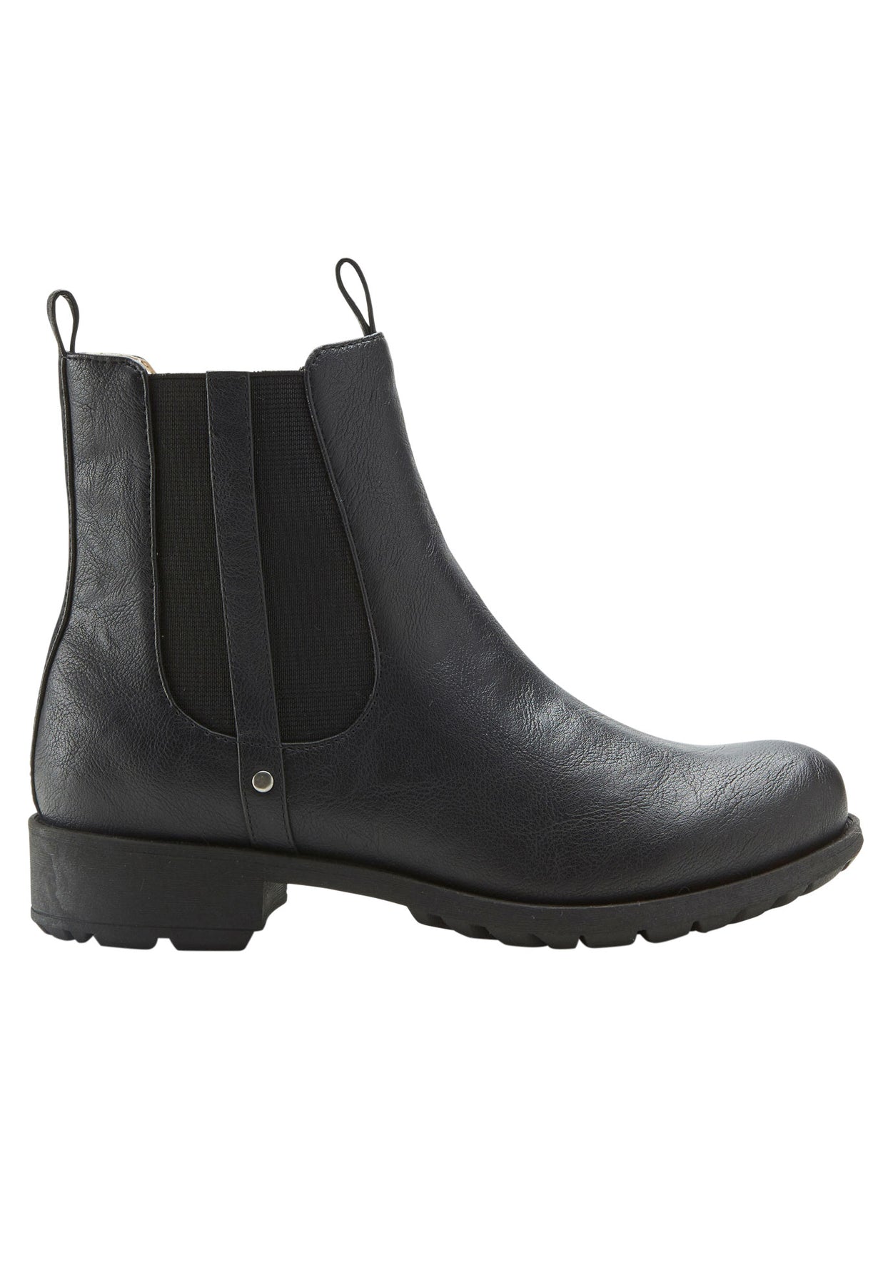 Impeccably crafted Chelsea bootie with a cozy sherpa lining is a winning combination. Made from faux leather, it features a round toe, elasticated side panels, two pull tabs for ease & a rubber stack heel. Wear yours with everything from jeans to dresses.