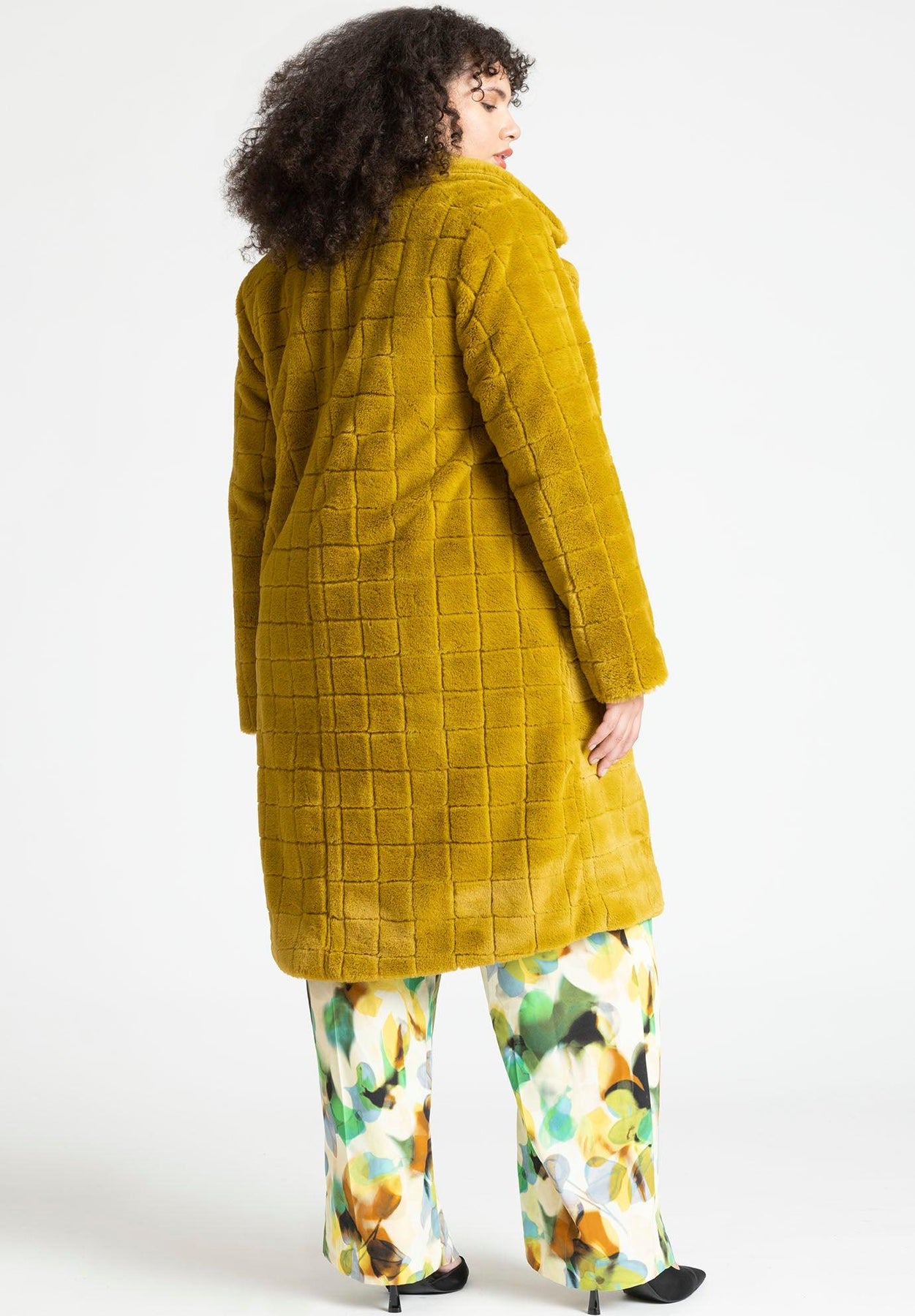 Dimensional Plaid Fur Coat
