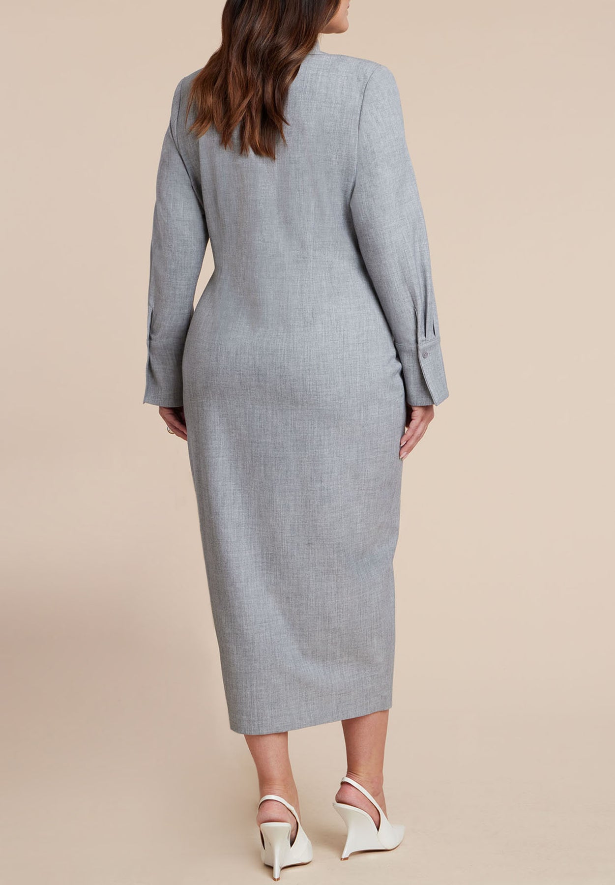 Bring tailored ease to your day-to-night look with this collared midi dress. A button-front placket and sleek fit offer timeless, desk-to-dinner versatility.
