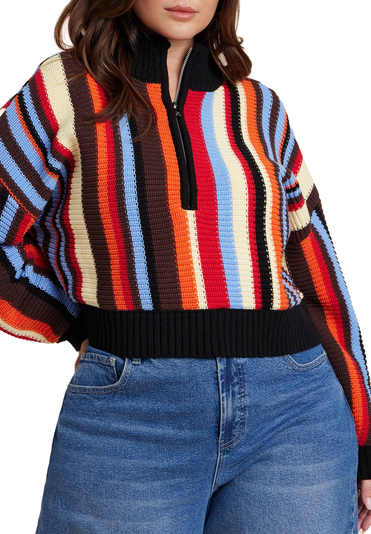 Elevate errands & coffee runs with this striped pullover sweater, colorfully finished with a sporty zip neckline. A relaxed fit and soft knit bring effortless comfort to everyday looks.