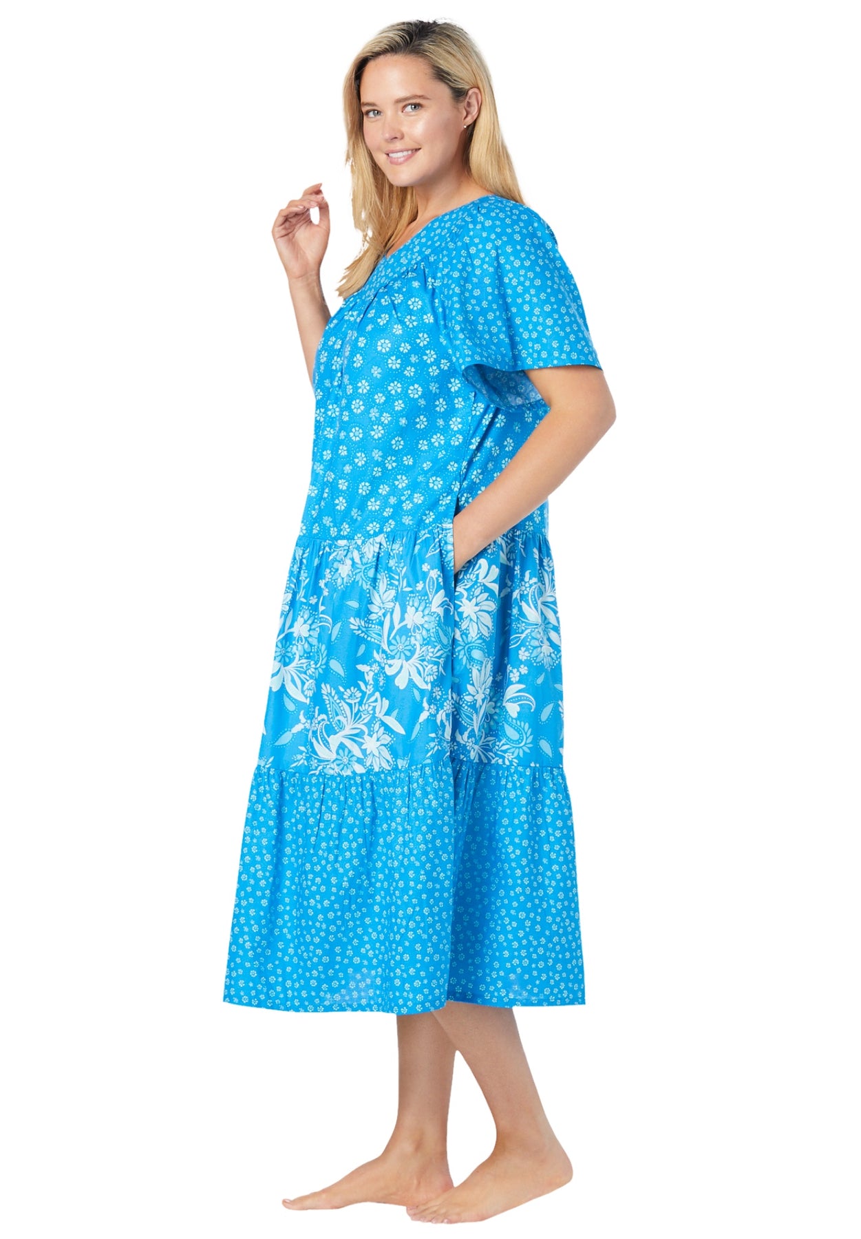 - Relax in style with our beautiful, feminine Tiered Print Lounger featuring a tiered skirt and flutter sleeves.