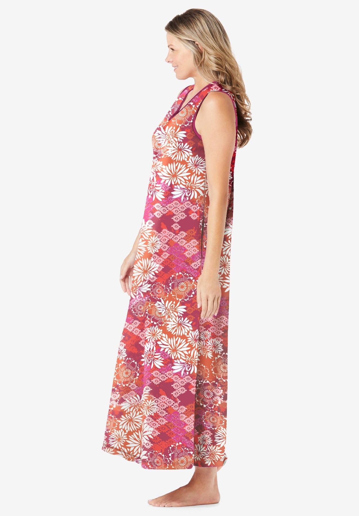 Our Trapeze V-Neck Lounger has a full sweep and side slits that create easy movement and give you the perfect relaxed fit. The V-neckline and sleeveless design provide all-day breathability.