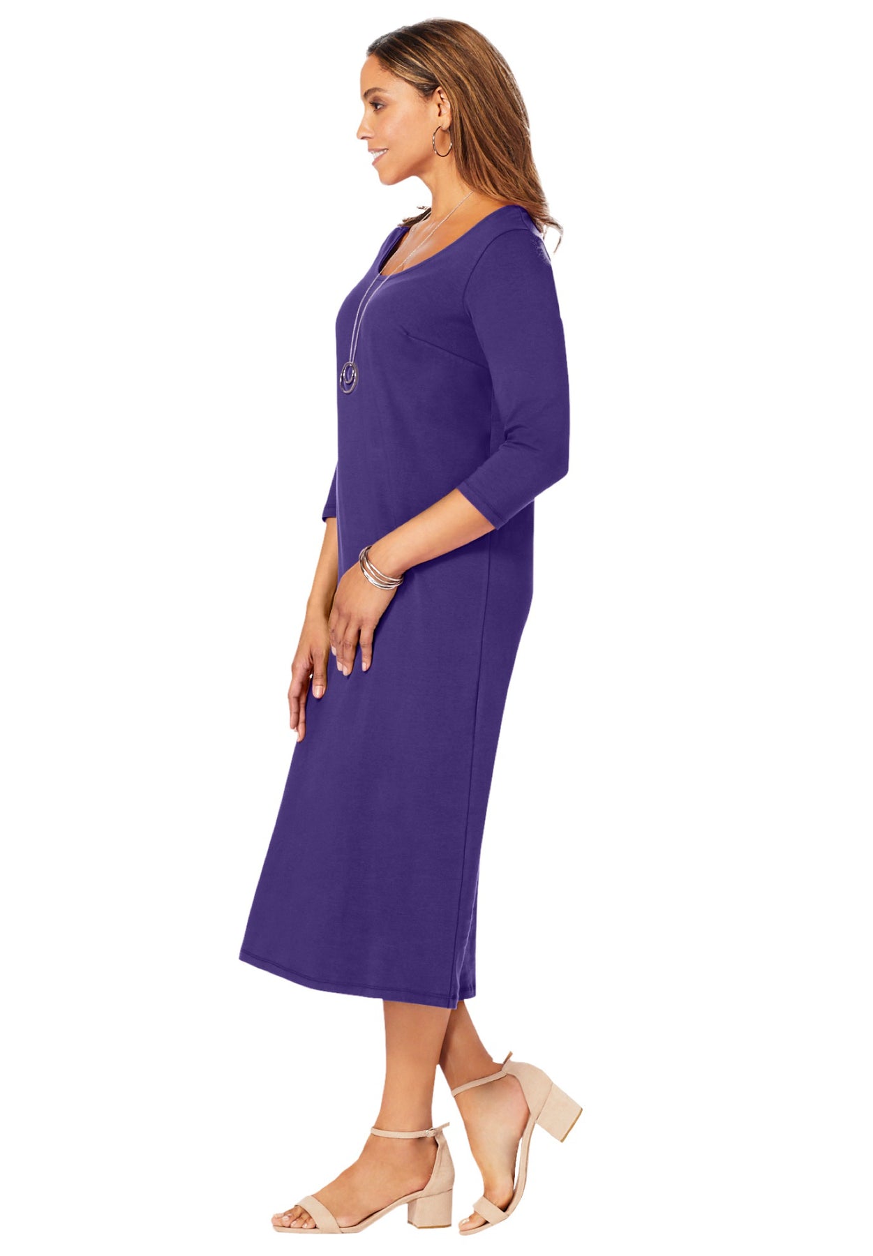 Scoop-neck dress in a shaped silhouette that flatters and a smooth stretch knit for can't-miss comfort. 3/4 sleeves.
