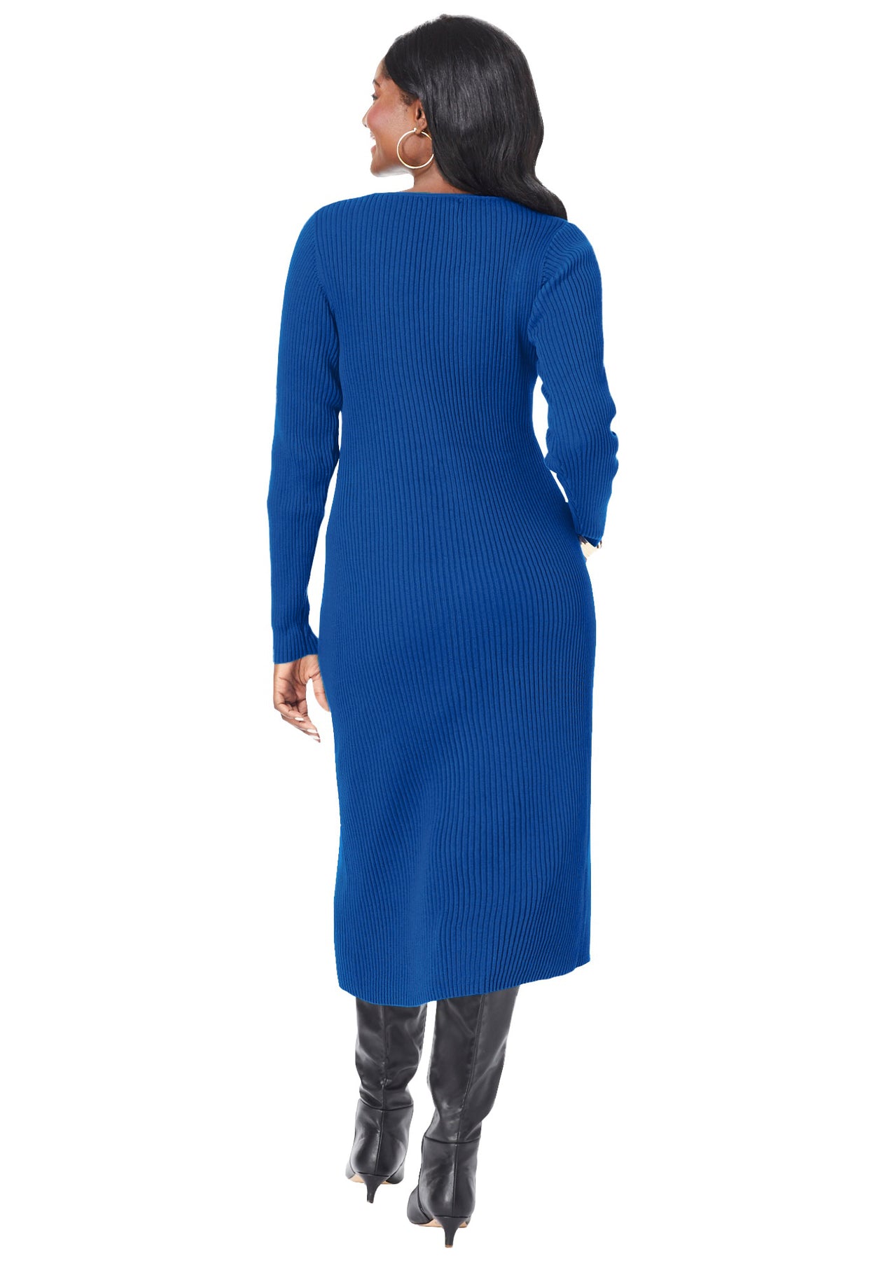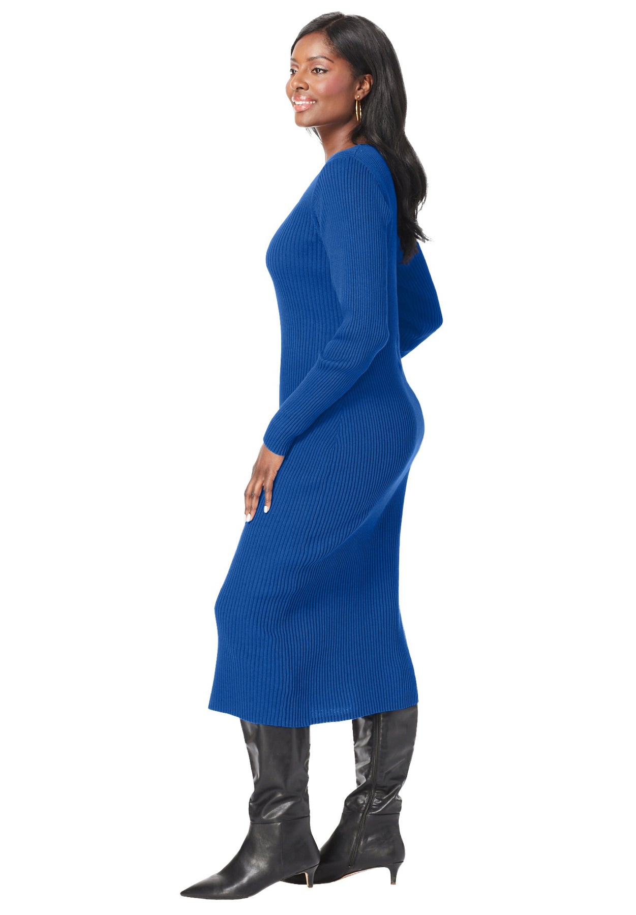 Scoop up this chic sweater dress in a flattering fit. Finish off your look with a statement necklace and boots.