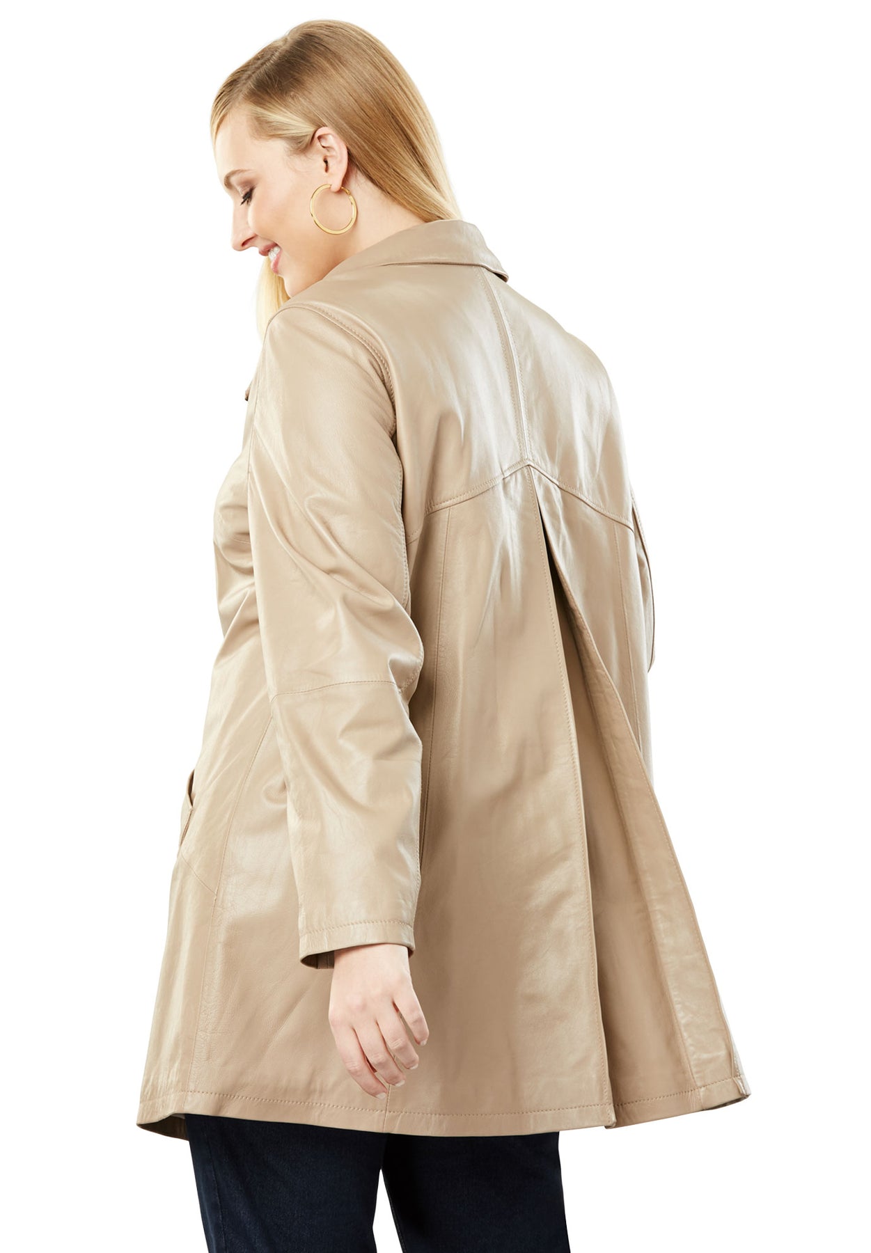 A figure-flattering fit in genuine leather with inverted back pleat. Fully lined.