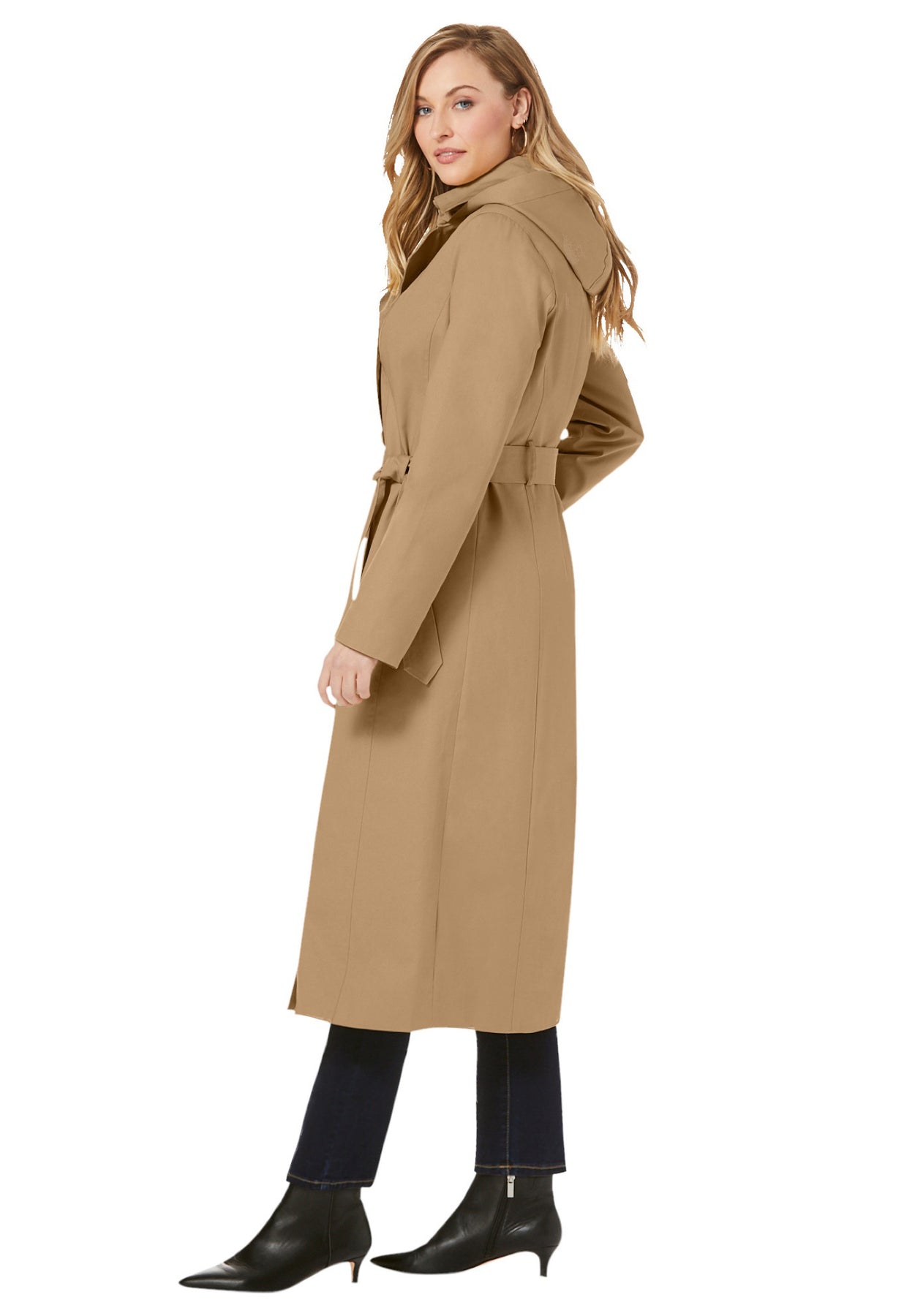 This long double breasted raincoat is figure flattering and ultra-chic, and easy to pair over everything from a pantsuit to your favorite jeans. With a detachable hood and tie waist, there's nothing about this top layer that you won't love.