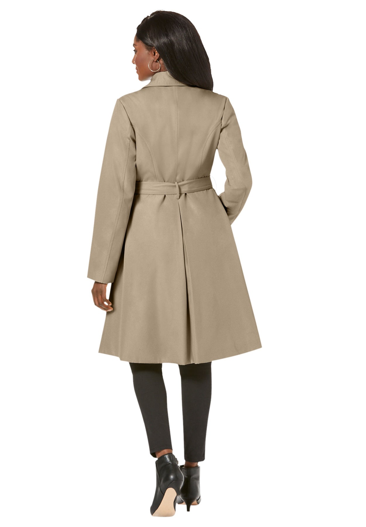 Top off all of your favorite looks from dresses and skirts to dress pants or jeans with this polished pleated trench coat. The fit & flare silhouette flatters your figure and the princess seams offer feminine shaping that you will love.