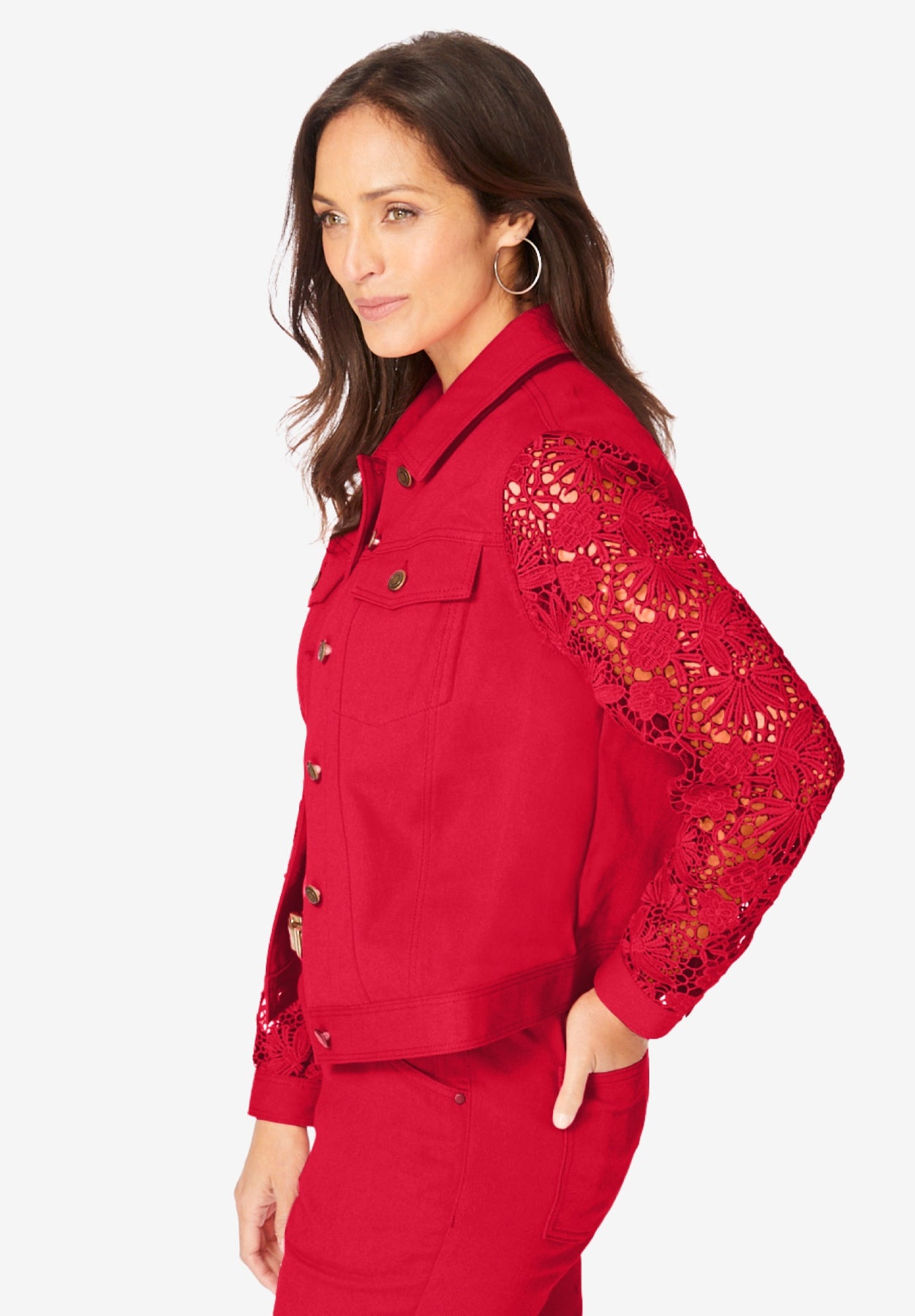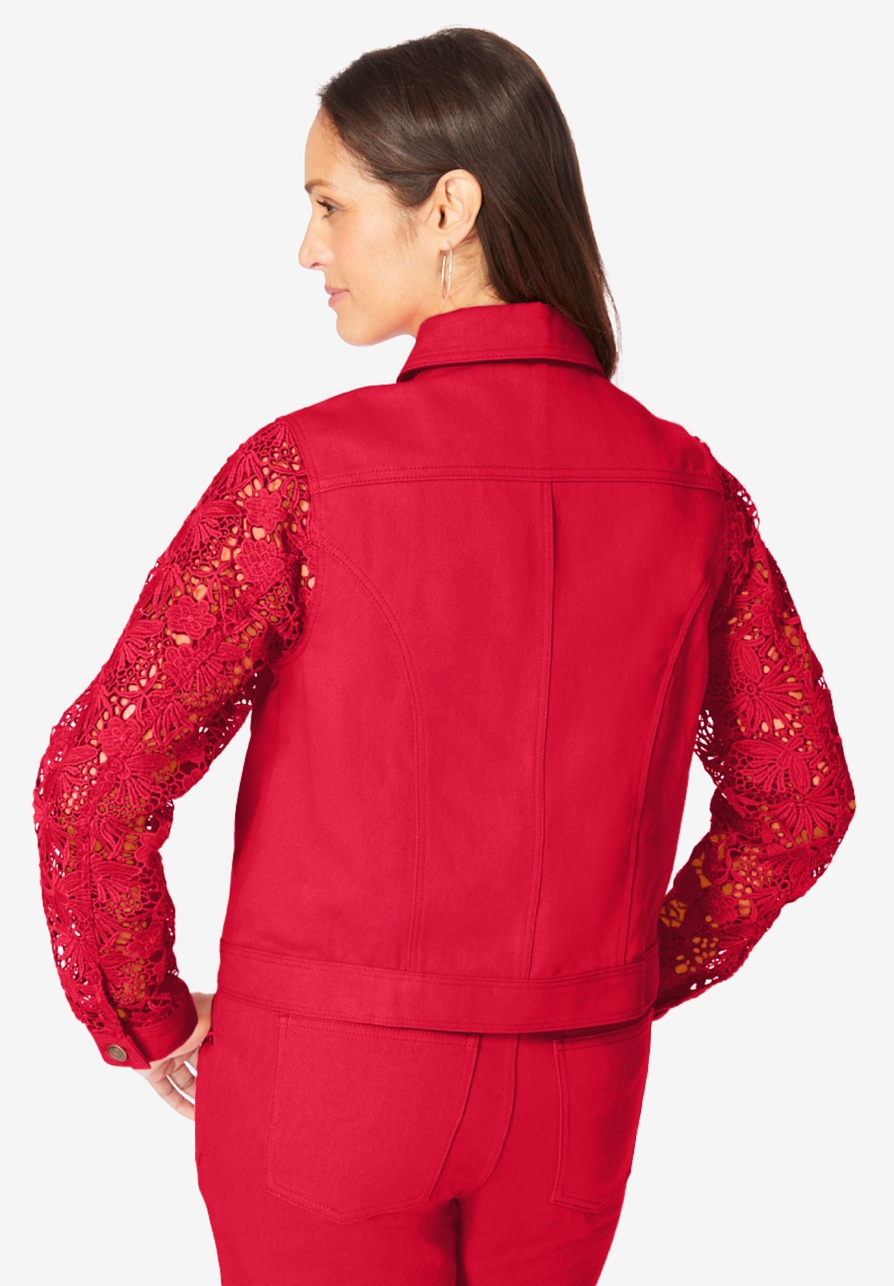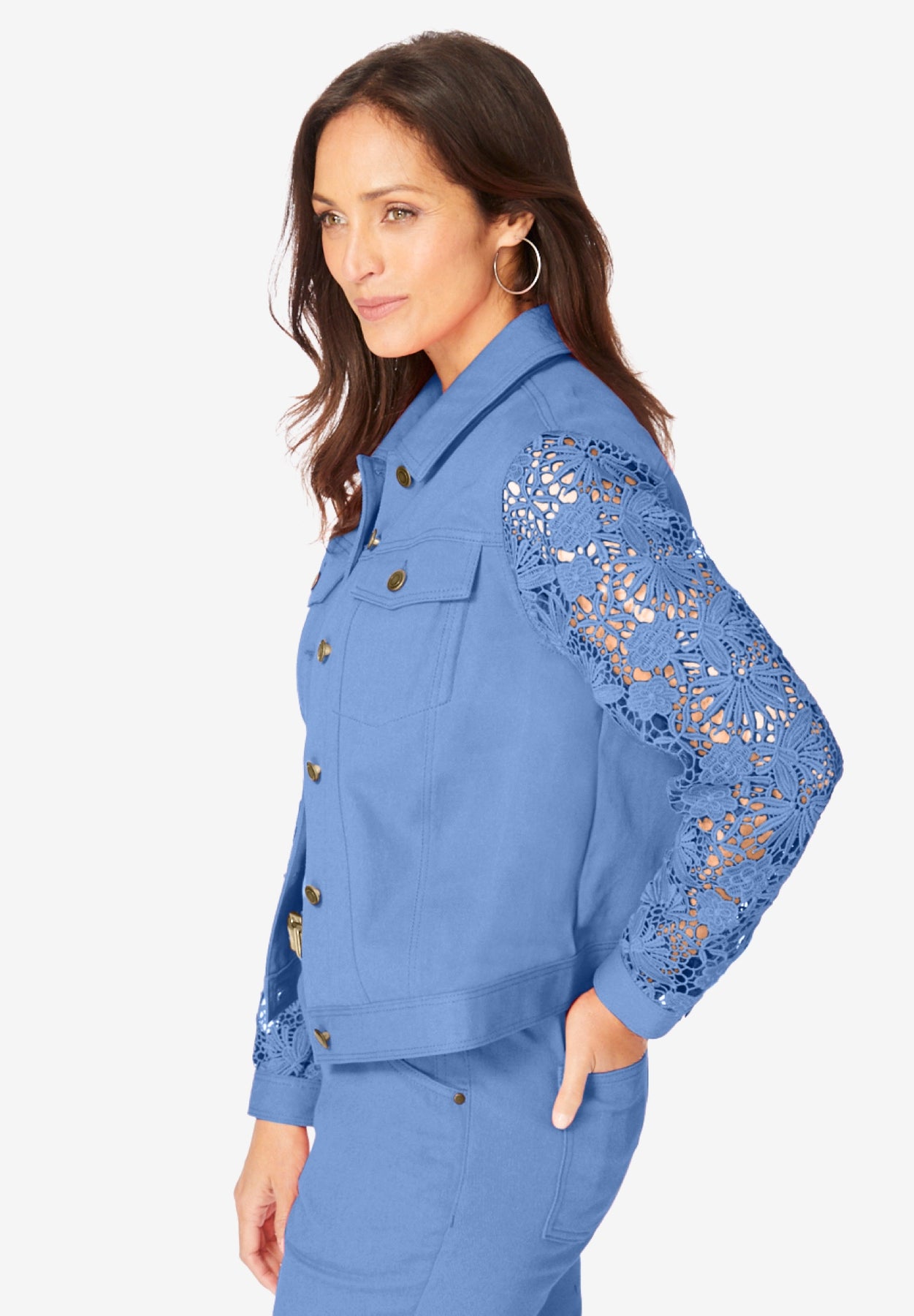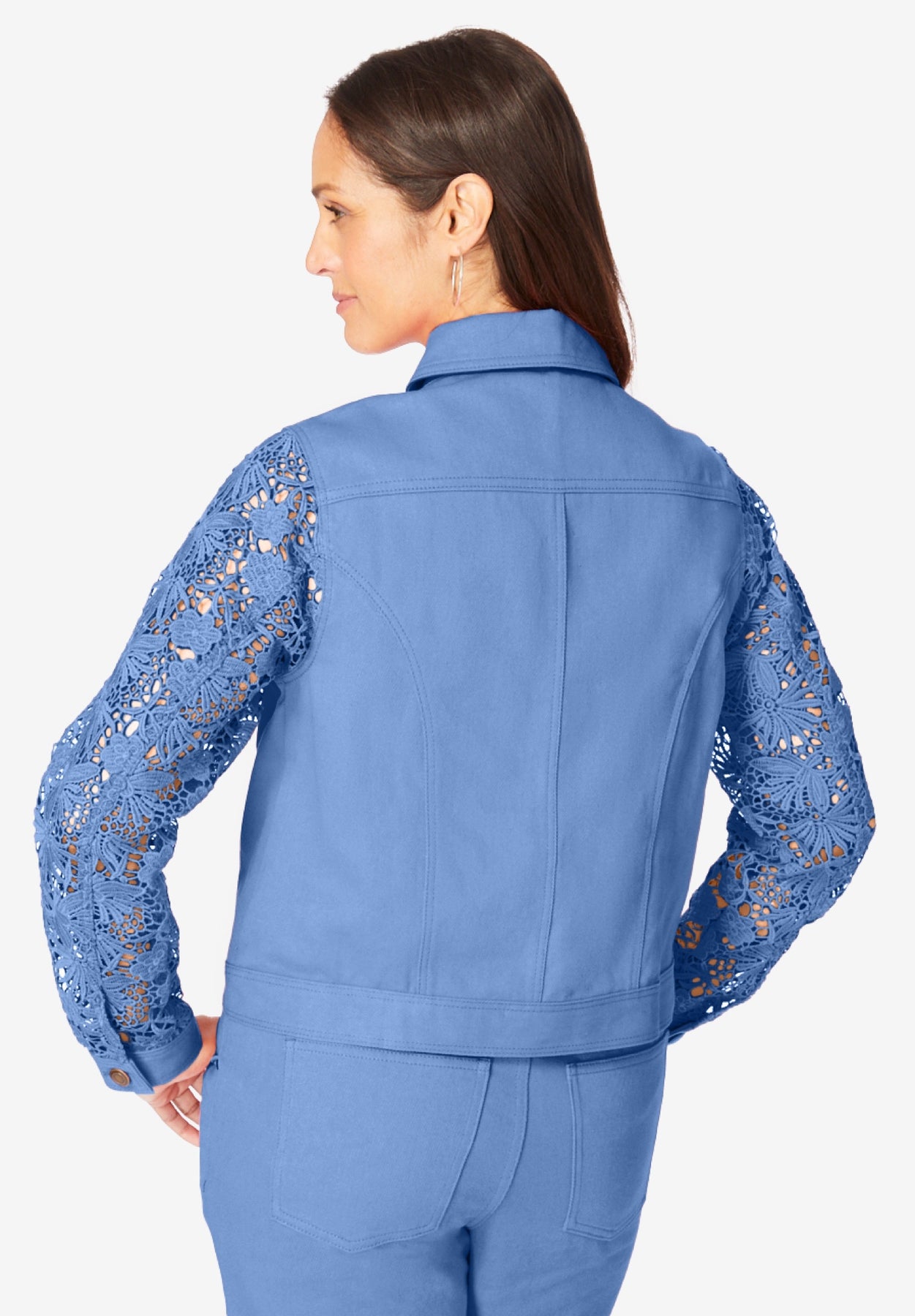 We've dressed up our bestselling denim jacket with lace sleeves for a more elevated, feminine look. The relaxed fit is equal parts flattering and comfortable, complete with classic seaming details and practical pockets. Pair it with your favorite pants or skirt to bring your denim look to a new level of pretty.