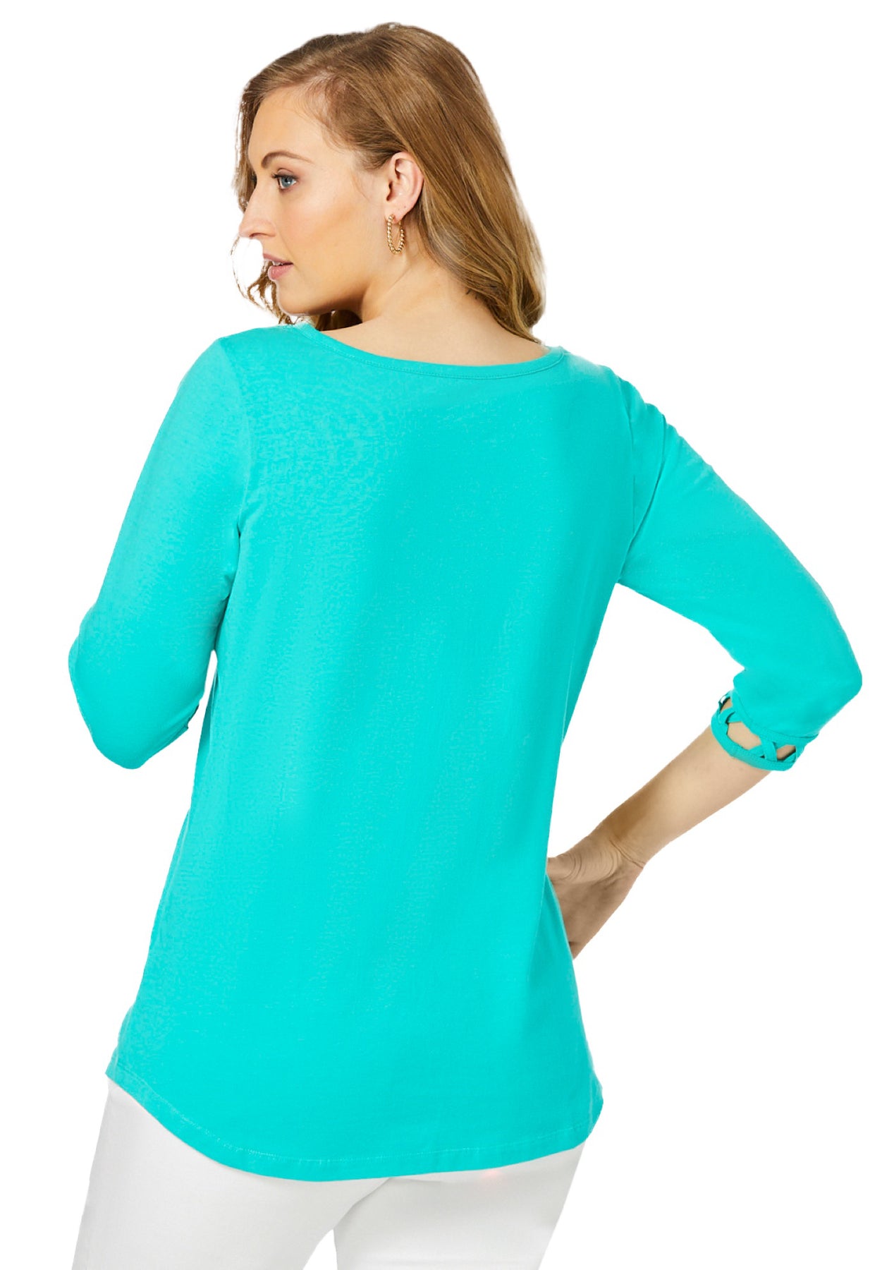 If you love our bestselling boatneck tunic, wait till you get your hands on this beauty! Accented with delicate crochet detailing around the neckline —pair it with your favorite denim to finish your look.