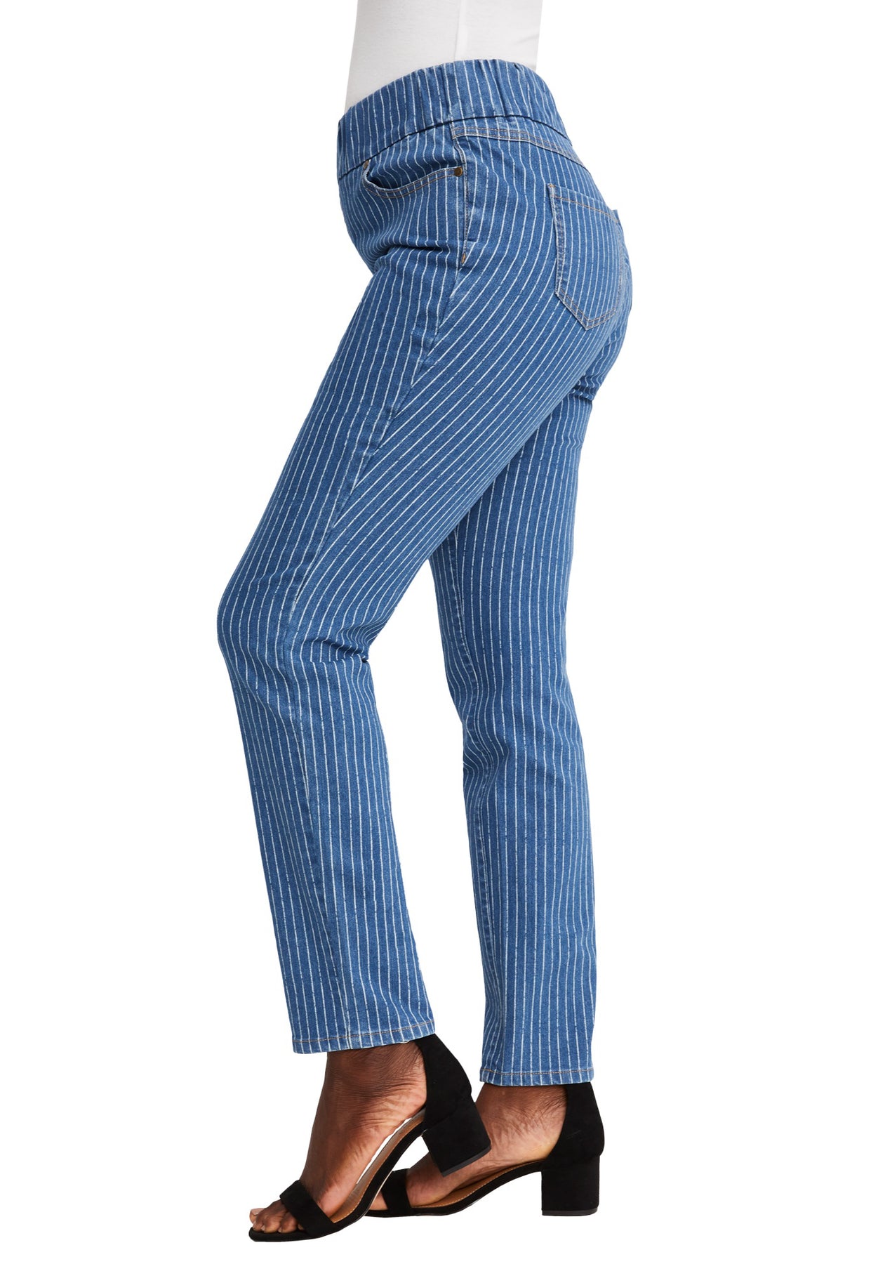 A pull-on straight-leg jean with a comfort waist that stays smooth and flexible — no gapping, no bulk.?