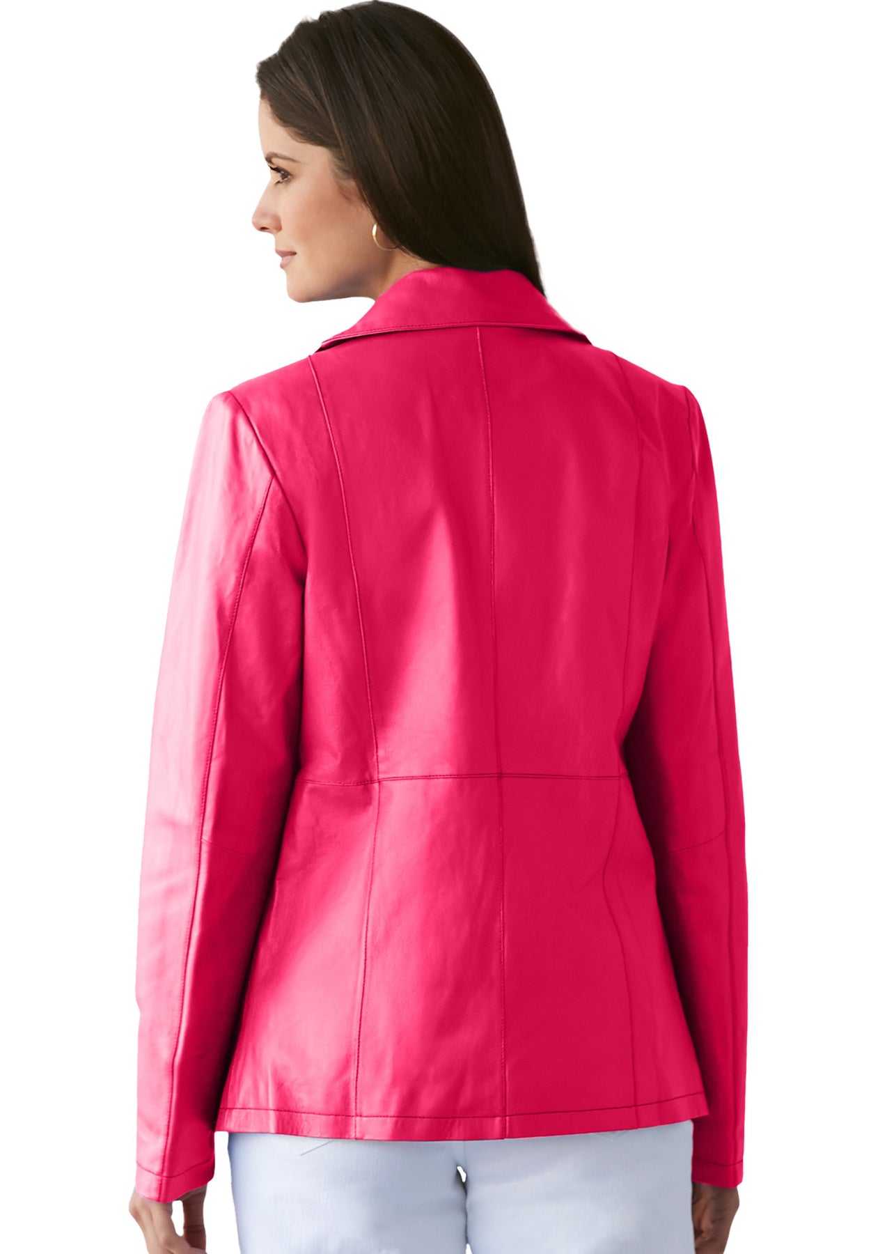 A refined version of the classic moto, this luxe leather jacket features a perfectly draped front that looks lovely zipped up or left open. The ruffled neckline offers a feminine finish that you will love and the ultra-comfortable fit eases over everything in your fall-forward wardrobe.
