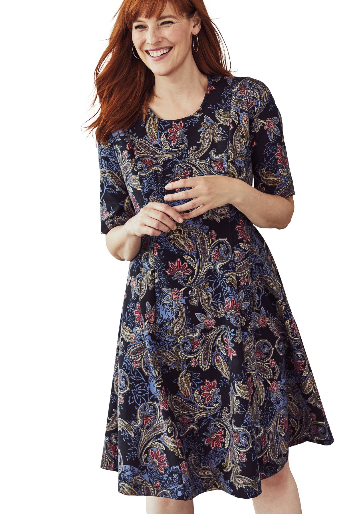 This pretty ponte dress flatters your curves - and then some. Styled with a sophisticated scoop neckline and elbow-length sleeves, you can wear this dress season after season. Complete with just the right amount of stretch, this ever-flattering fit & flare silhouette moves with you wherever you go. Add eye-catching accessories to make your personality pop, and you are sure to steal the style spotlight.