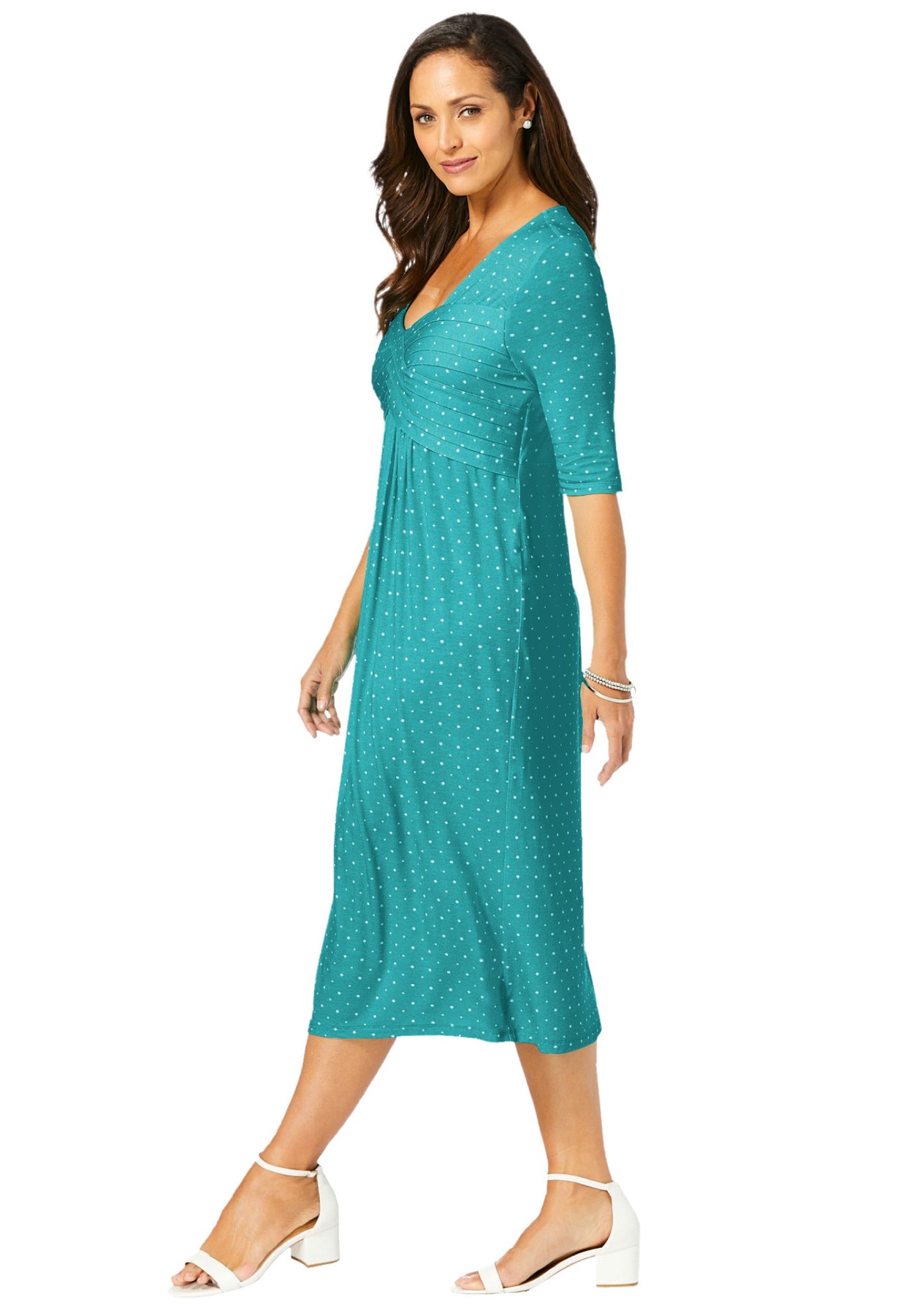 Your most-loved knit pullover, now in a dress! Polished pleat detail instantly elevates your everyday look. The relaxed fit is figure flattering and gives an effortless vibe. Crafted from a comfortable rayon and spandex blend, this dress moves with you throughout your day, no matter what is on the agenda. Dress it up with accessories to make your personality pop!