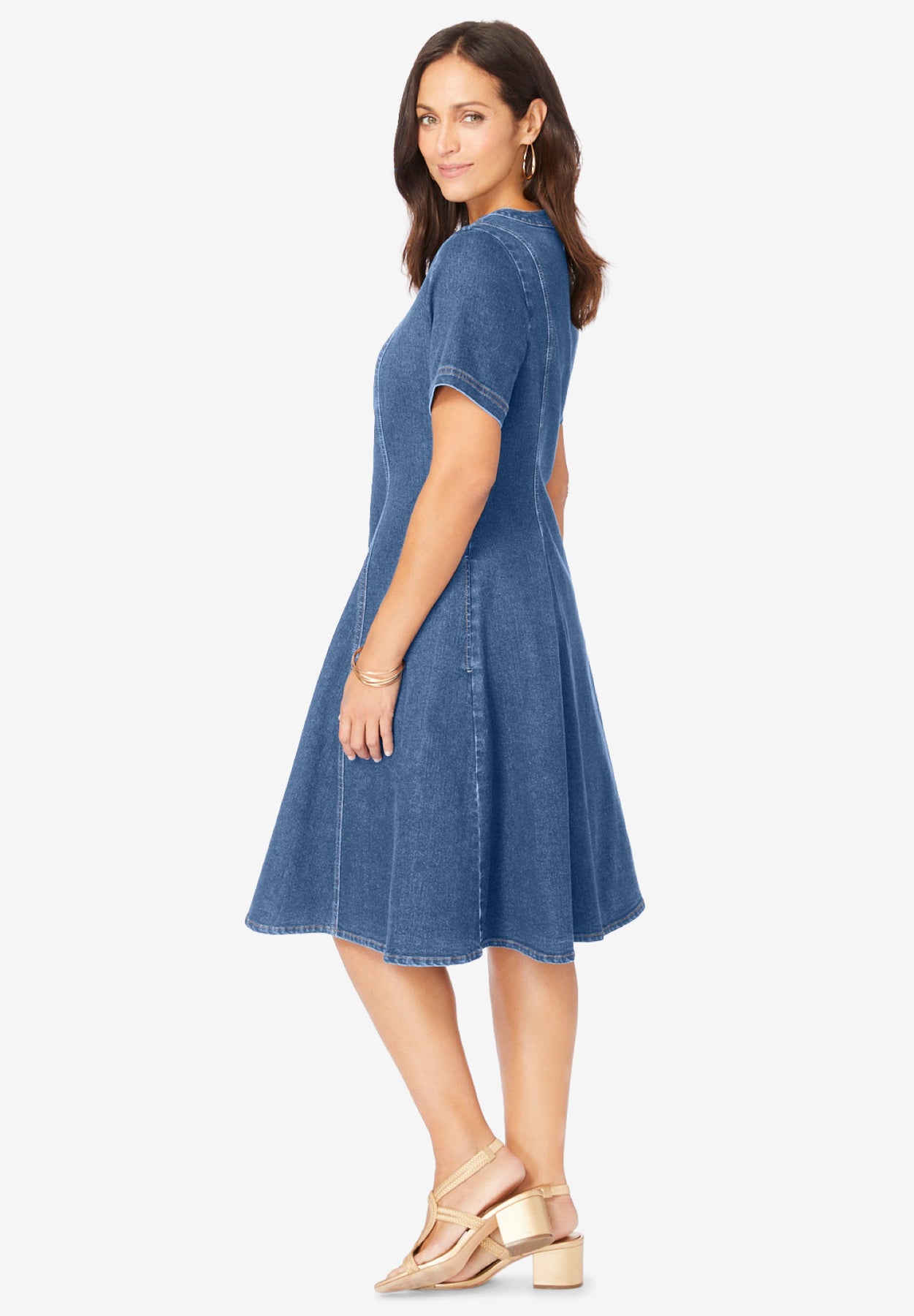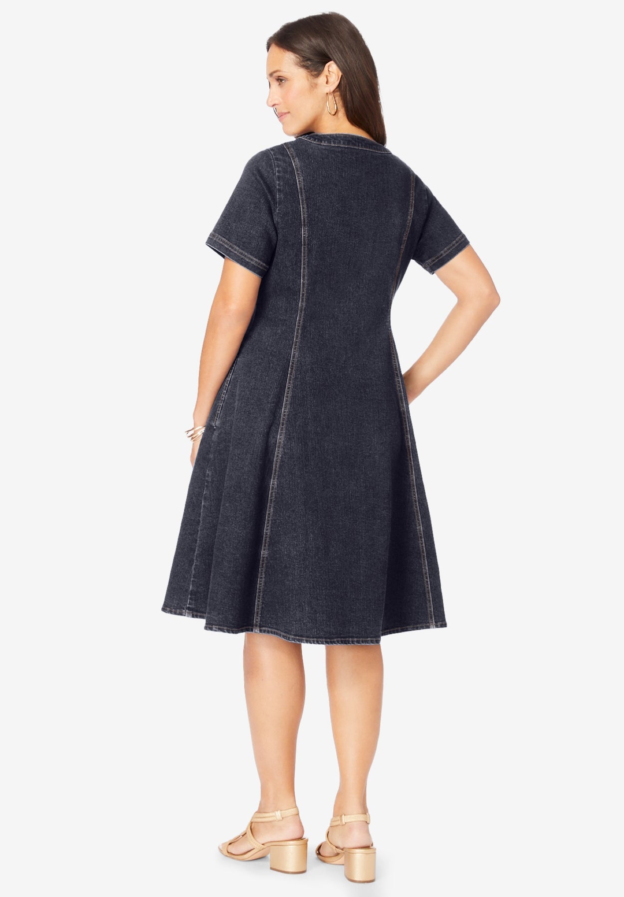 Meet the dress that’s as comfortable and flattering as your favorite pair of jeans! Fashioned in soft, timeless denim with a Mandarin collar and functional front buttons.