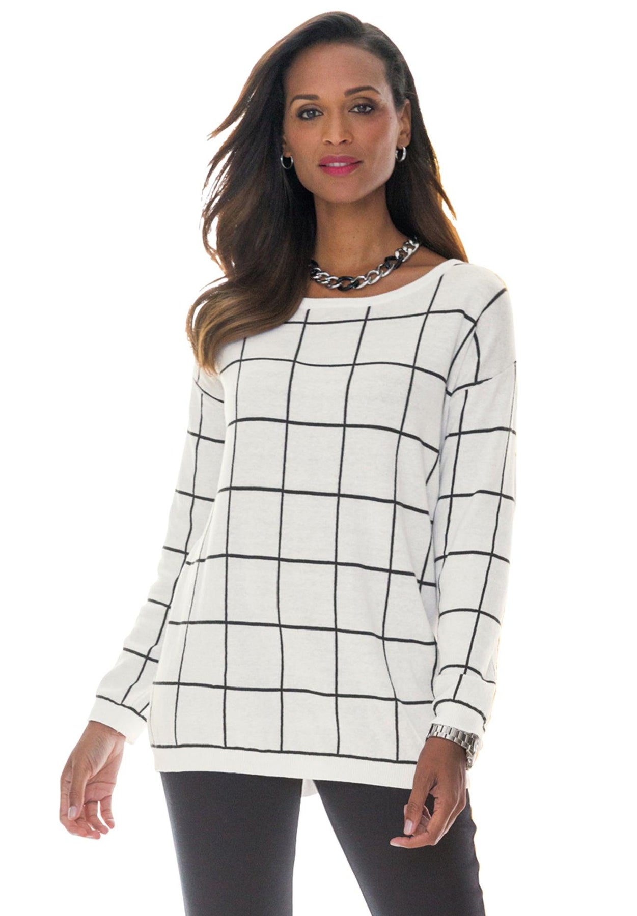 This cotton sweater tunic is a statement maker. Pair it with trousers and a blazer for work or with jeans for a polished weekend look.
