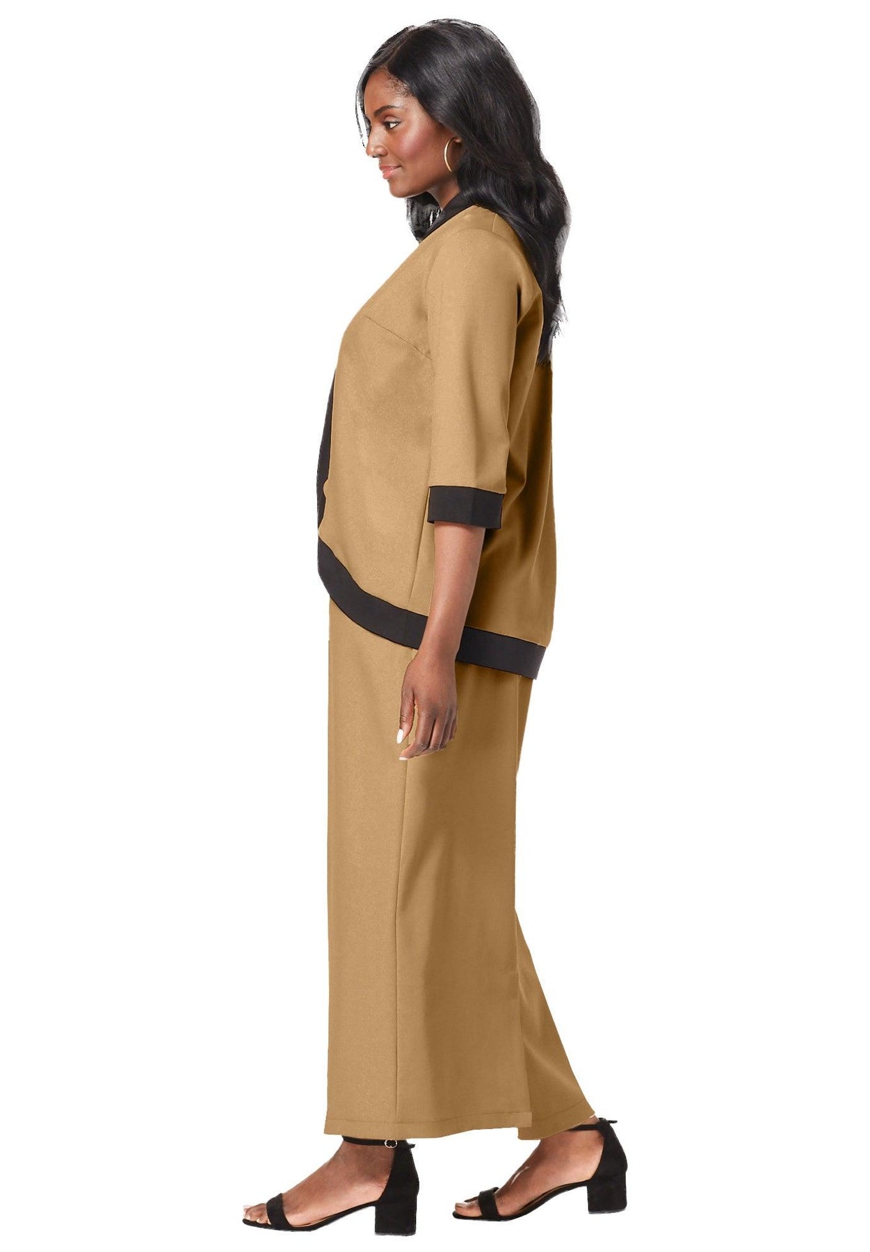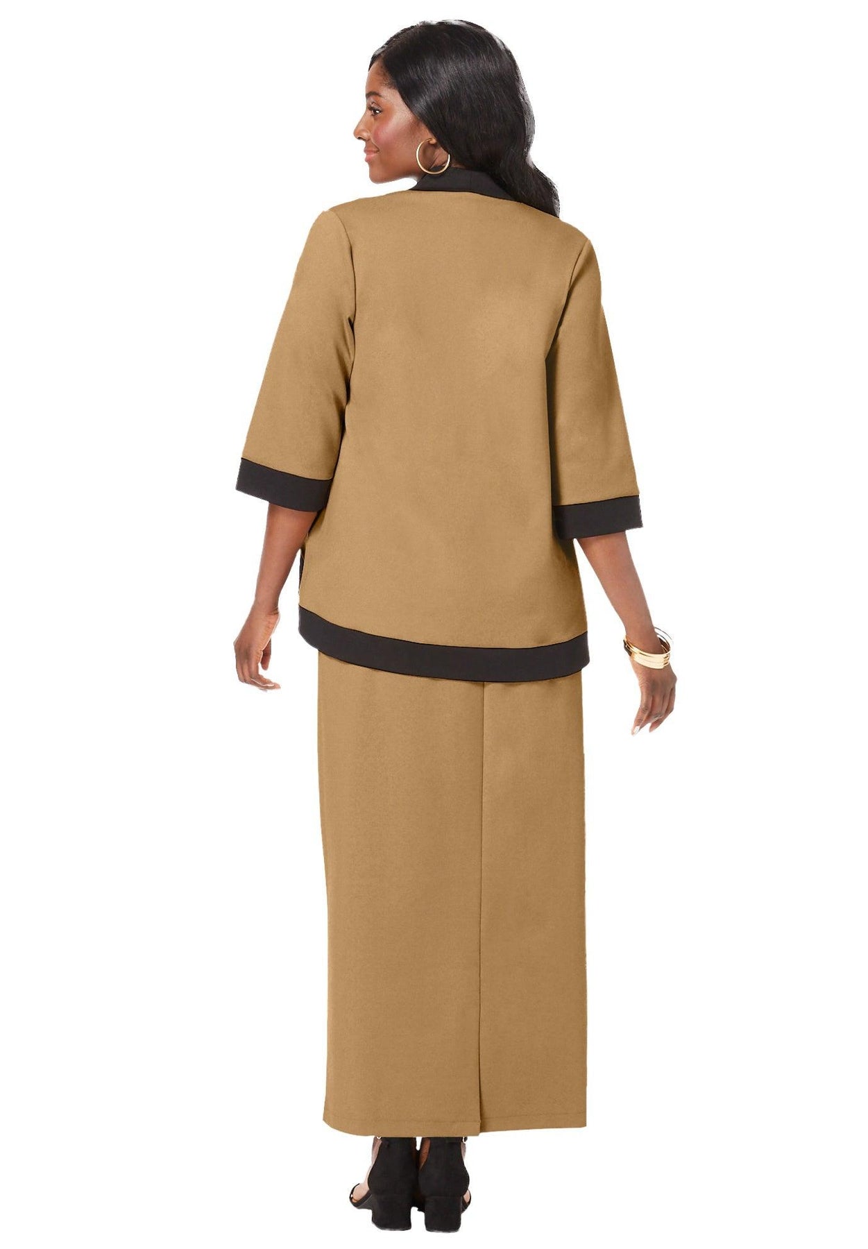 Make your style even more seamless with this polished ponté dress suit. Elevated by a cocoon jacket finished with an ultra-chic contrast border, this ensemble is easily amplified by charming accessories and a classic kitten heel.