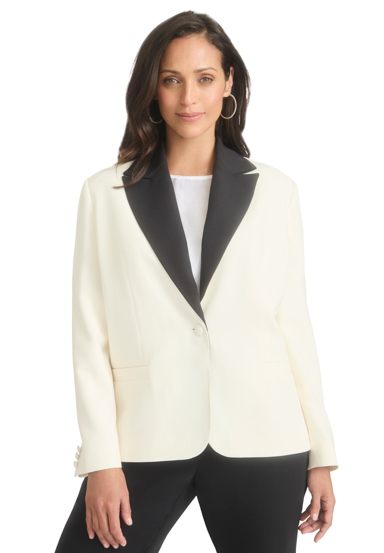 This blazer adds sophistication to any outfit with its striking contrast lapel. With its relaxed silhouette and single button closure, you’ll be comfortable in the office or at formal events. Style it with a classic trouser or a pencil skirt for a timeless look.