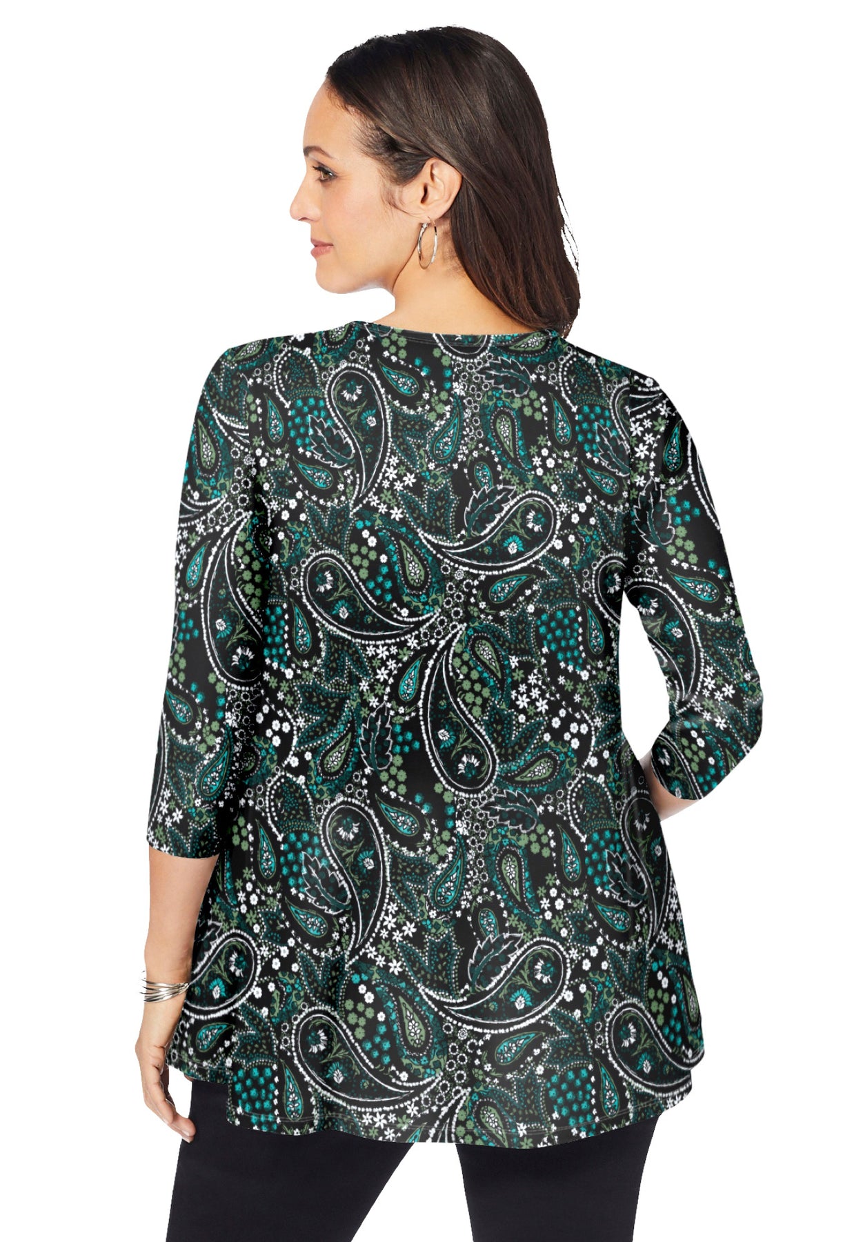 The comfortable and flattering fit of this timeless tunic is one that you will love. The three-quarter sleeves offer season-spanning style and the keyhole neckline adds a feminine finish, perfect for every occasion.