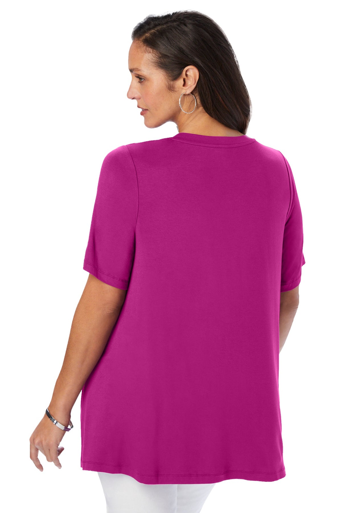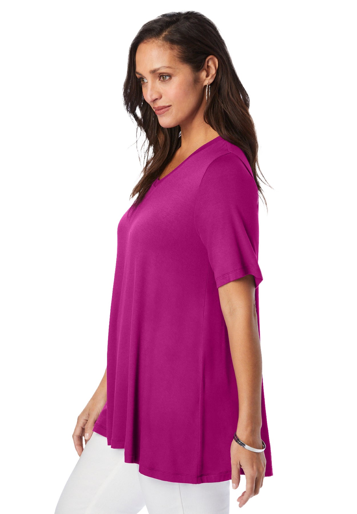 Stretch Knit V-Neck Swing Tunic