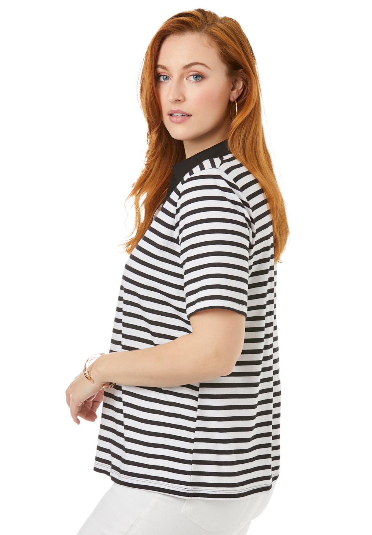 Add a touch of sporty to your tee rotation. Our polo features a flattering straight silhouette with a classic polo collar. Pair it with pants, skirts, shorts and your favorite sandals or sneakers!