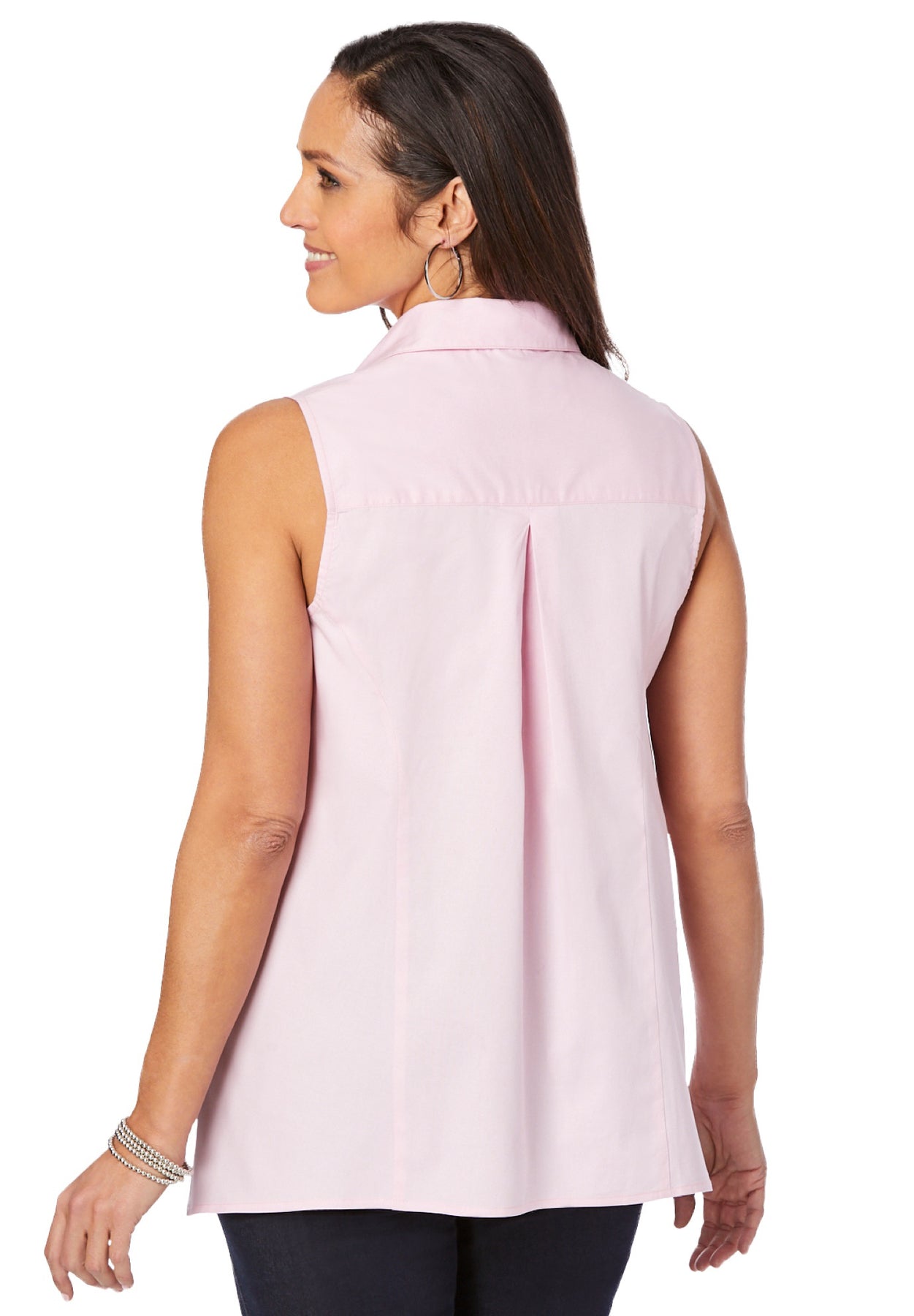 Elevate your closet with this crisp poplin sleeveless shirt. Polished and chic, this top features a flattering, flow silhouette and is dressed up with a collar. Layer with a cardigan, or pair it with a skirt or slacks.