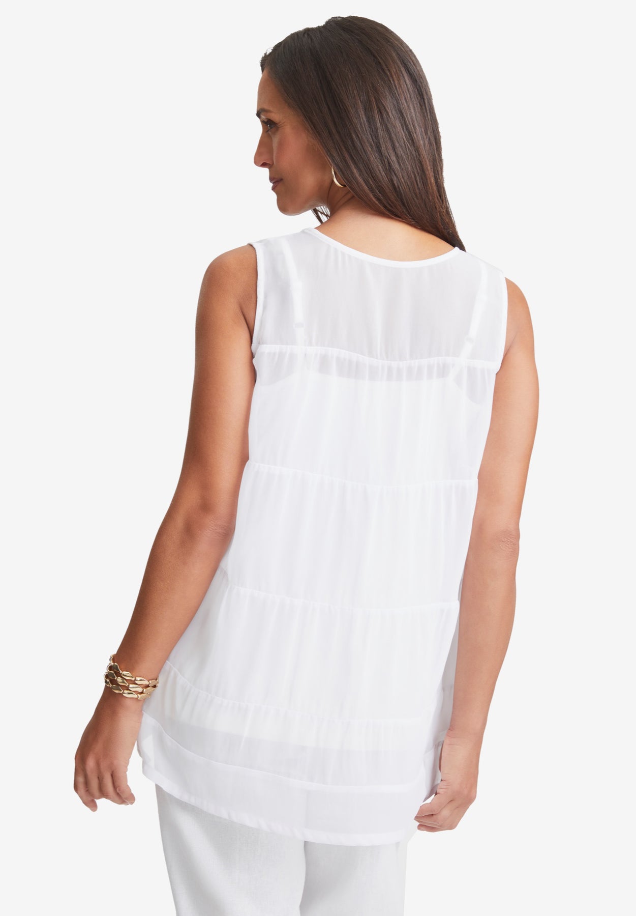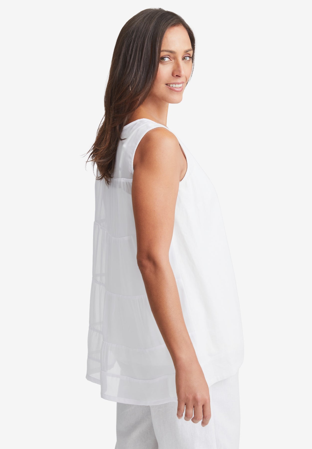 Sleeveless Linen Georgette Tiered Back Tunic