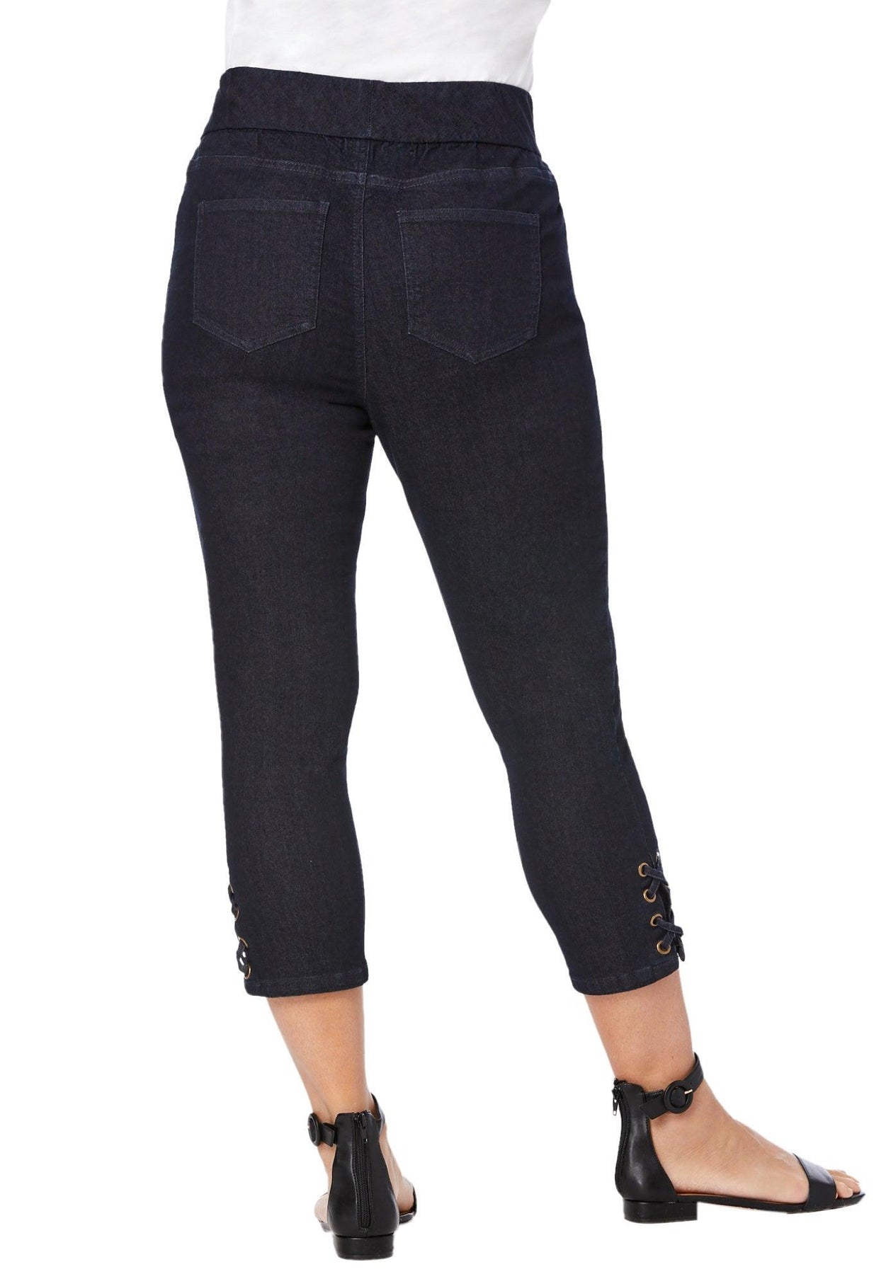 Comfort Waist Stretch Denim Lace-Up Capri | Jessica London
