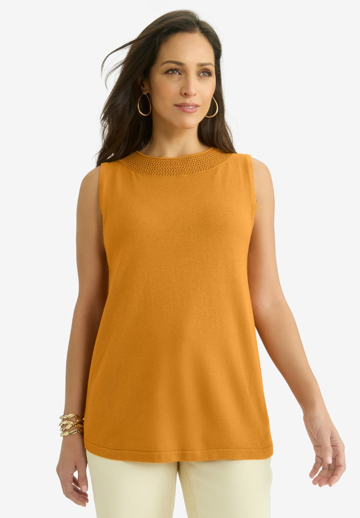 The delicate crochet trim adds a whimsical touch to this shell. It’s the perfect layering piece to wear under cardigans and blazers. For a coordinated look, pair it with the matching Crochet Trim Cardigan—this combination works beautifully with jeans, pants, or skirts!