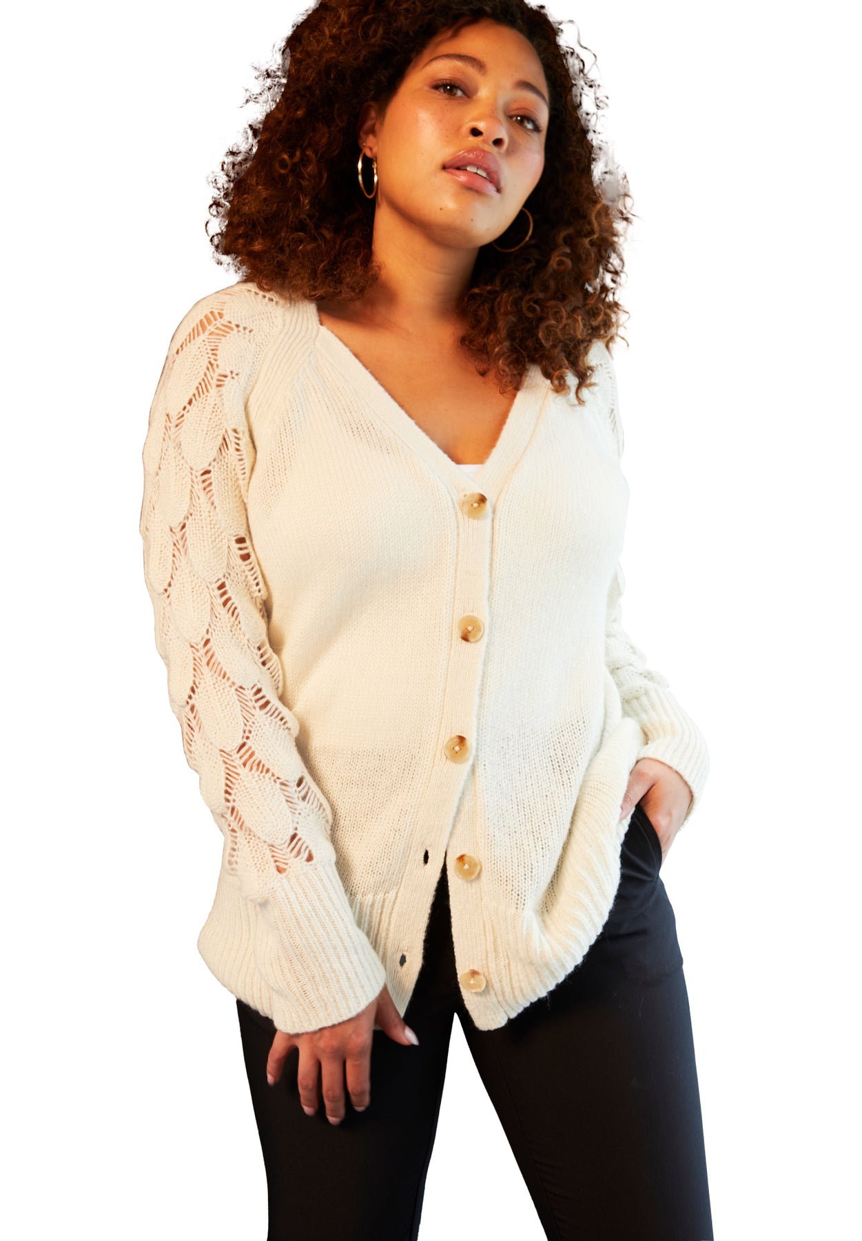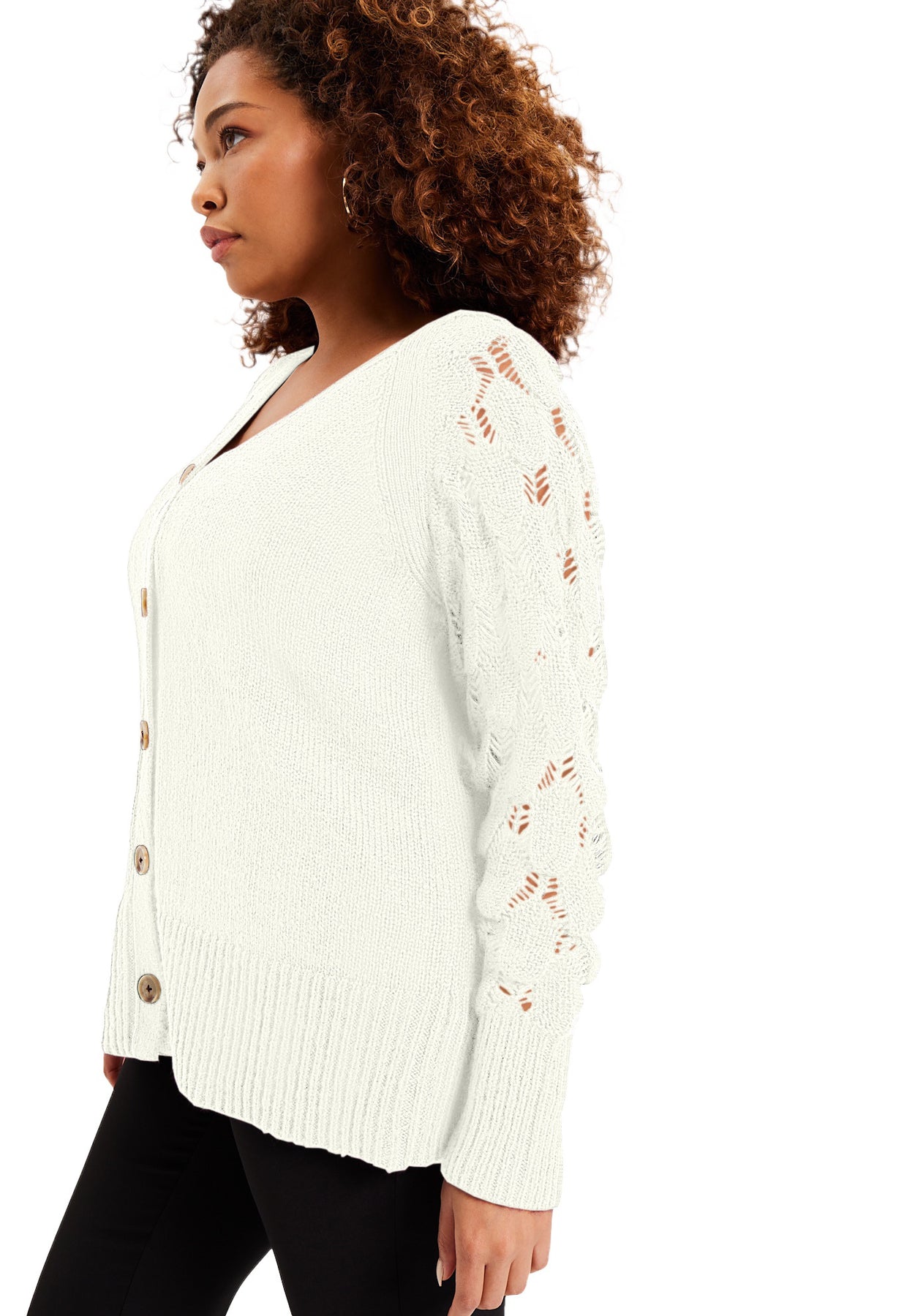This classic button-front cardigan is a must for cool-weather style. The openwork detail adds a soft, textural touch along with the ribbed cuffs and hem for eye-catching appeal. The relaxed fit is figure flattering and effortlessly pairs over everything in your wardrobe.