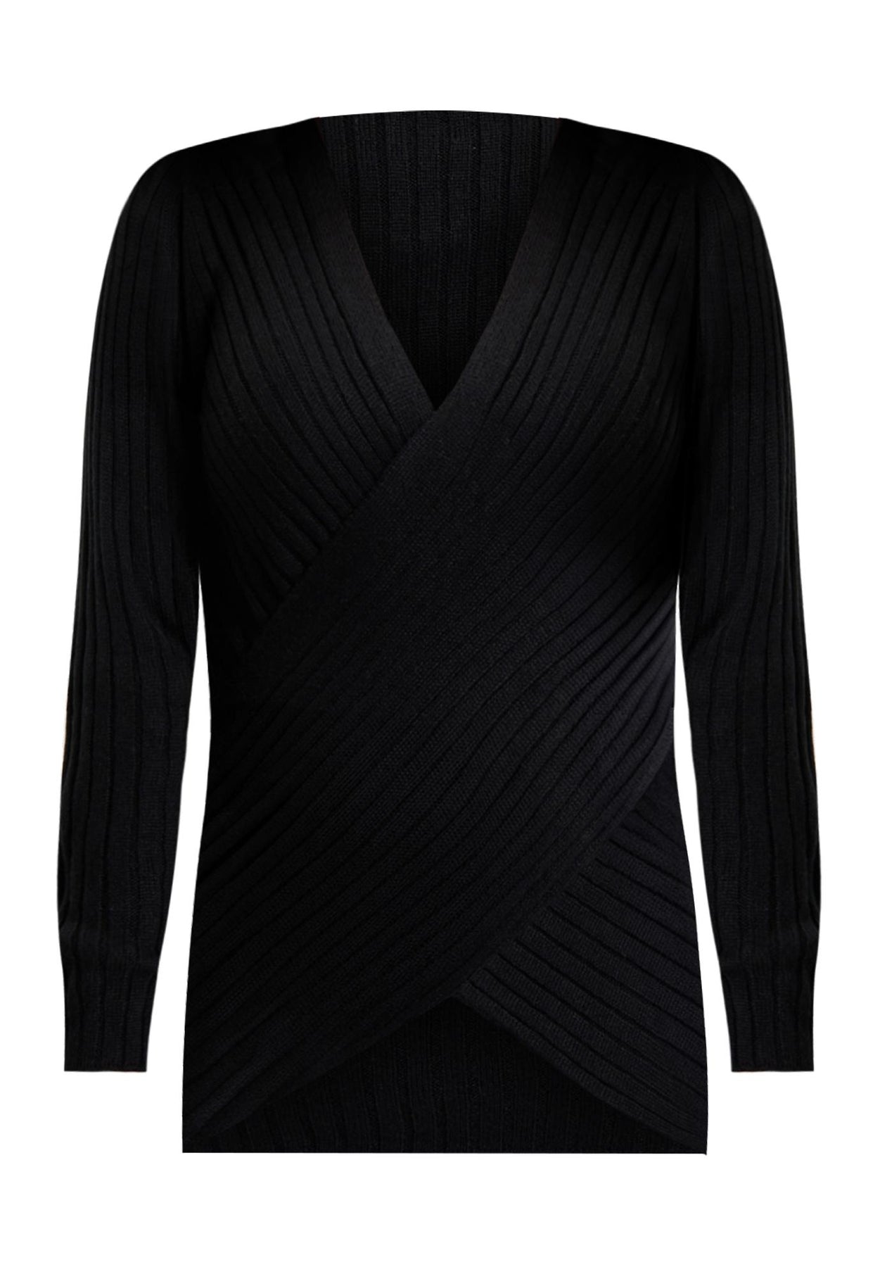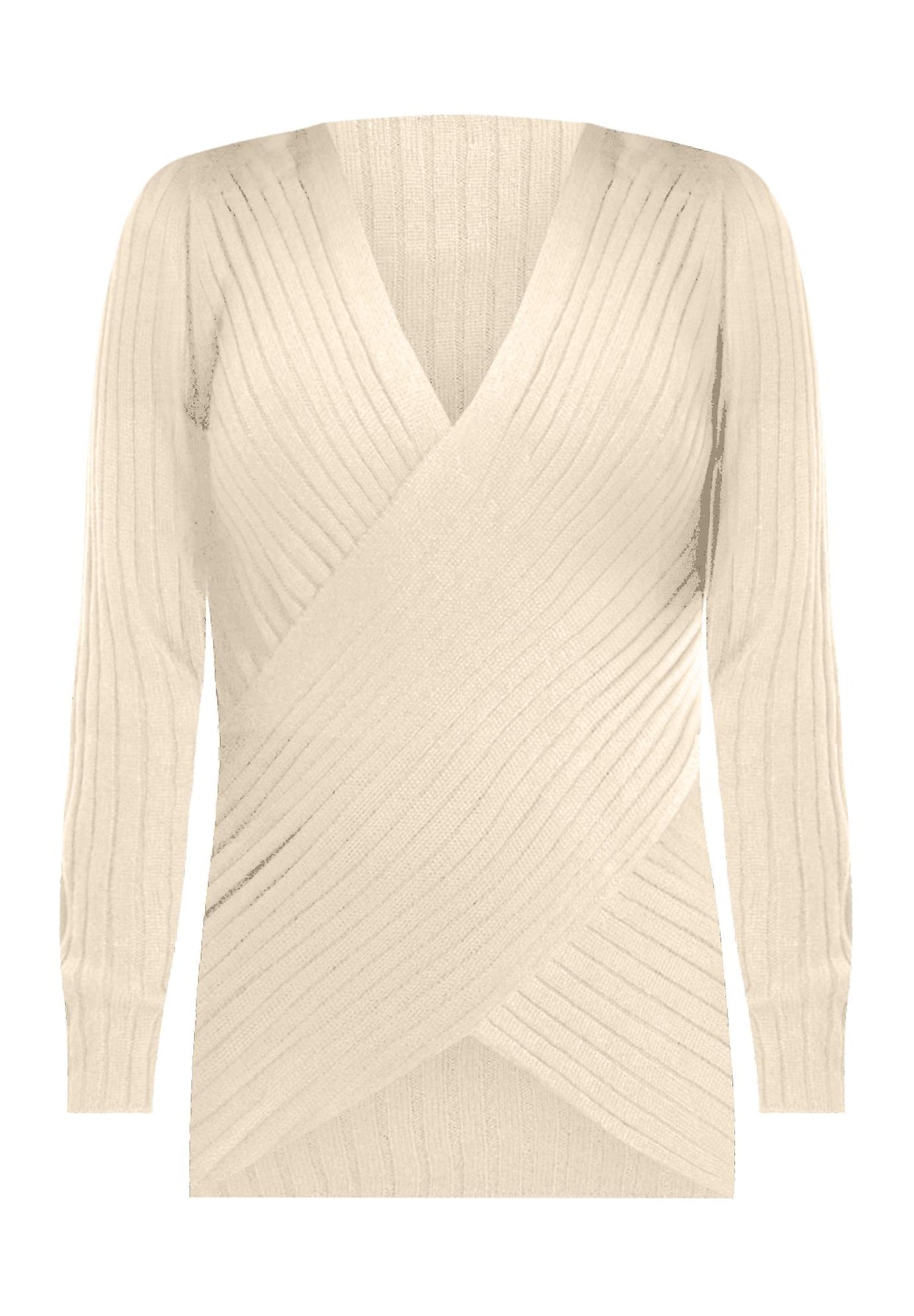 This is one of those sweaters you will wonder how you ever lived without. A crossover front brings figure-flattering sophistication to the simple style, while side slits lend movement. Long sleeves.