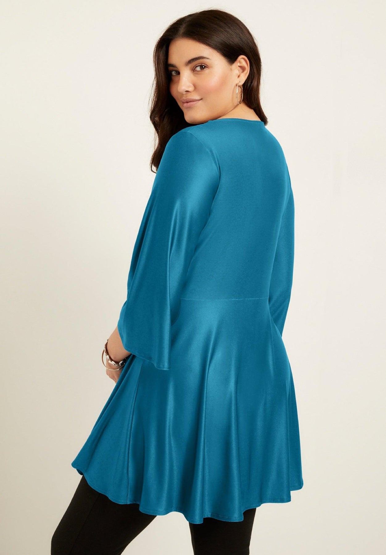 This tunic is the beautiful, breezy essential you need for effortless style. Featuring blouson sleeves, with elegant ruching that defines the empire waist for a boldly feminine silhouette.