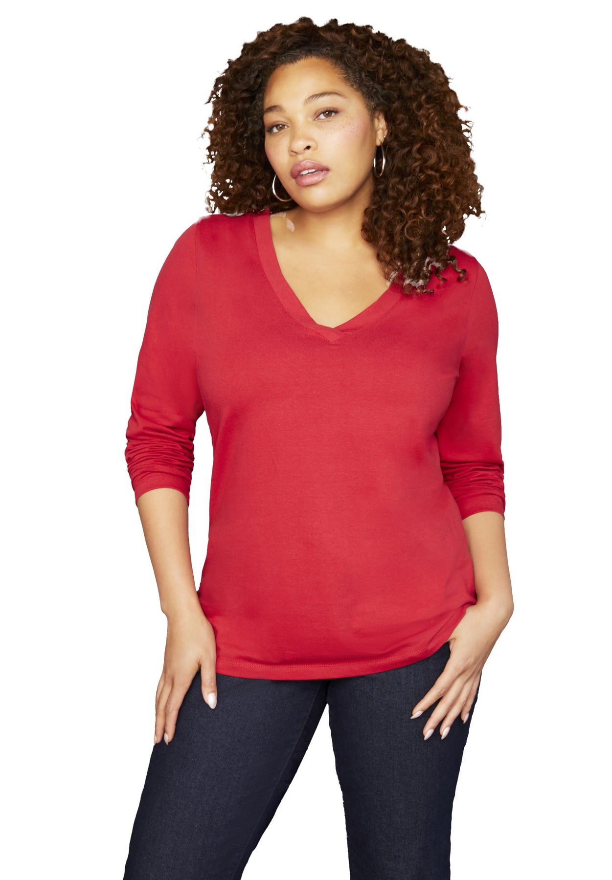An easy tee in a soft knit fabric with a feminine V-neck design.