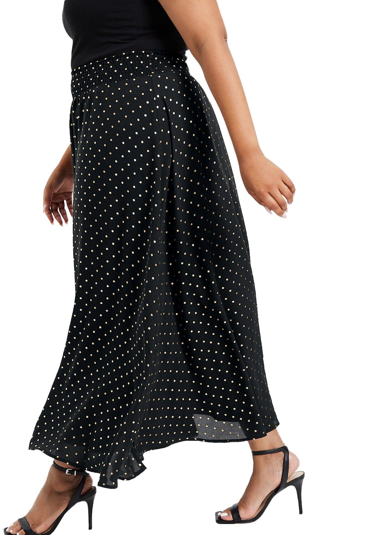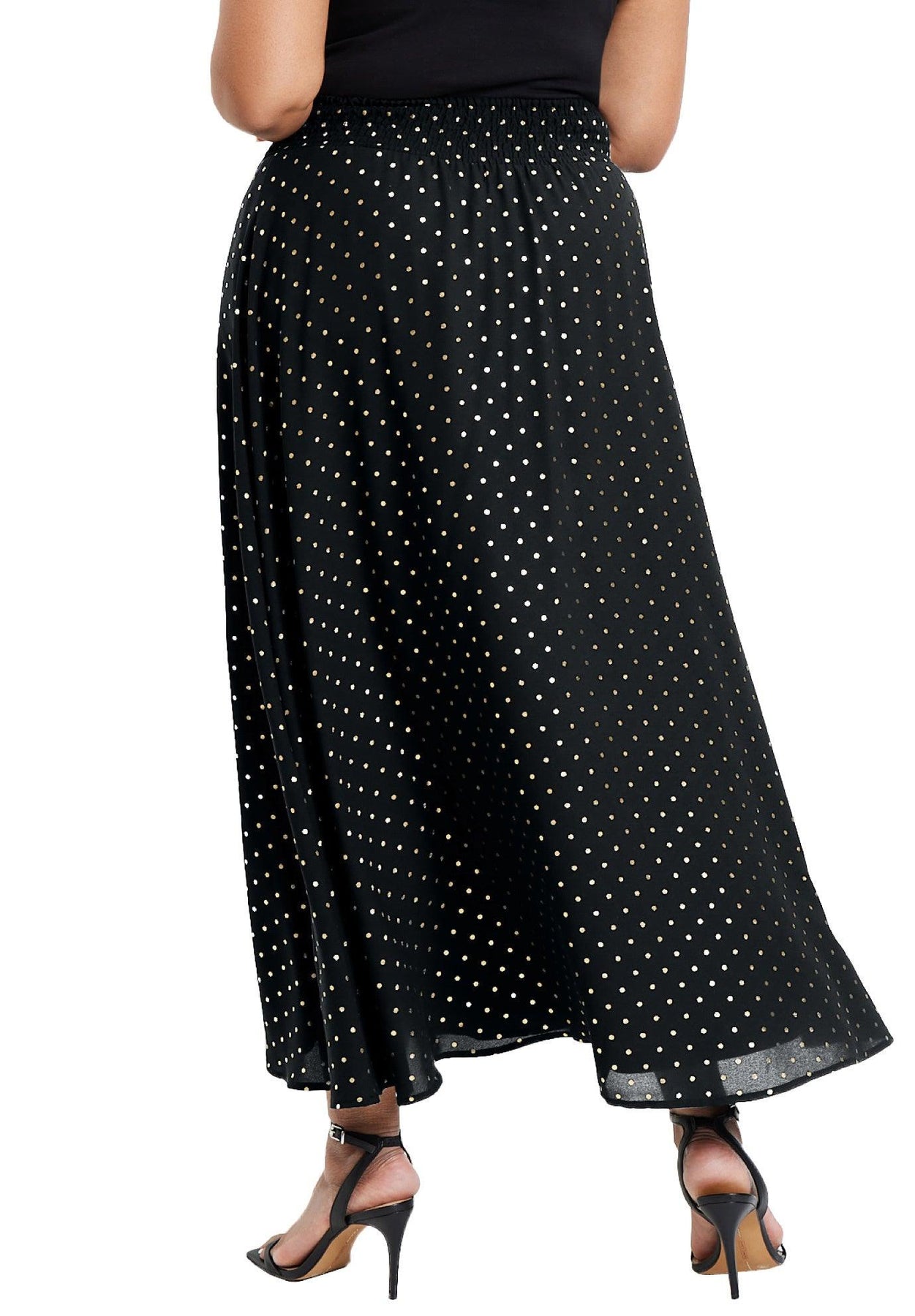 Sophisticated and elegant, this lightweight georgette skirt boasts a metallic, eye-catching polka dot pattern and a full, swirling silhouette. Wear it alone or pair it with the matching top for the easiest going out outfit ever. Complete with an elasticated smocked waistband for an all-night comfortable wear.
