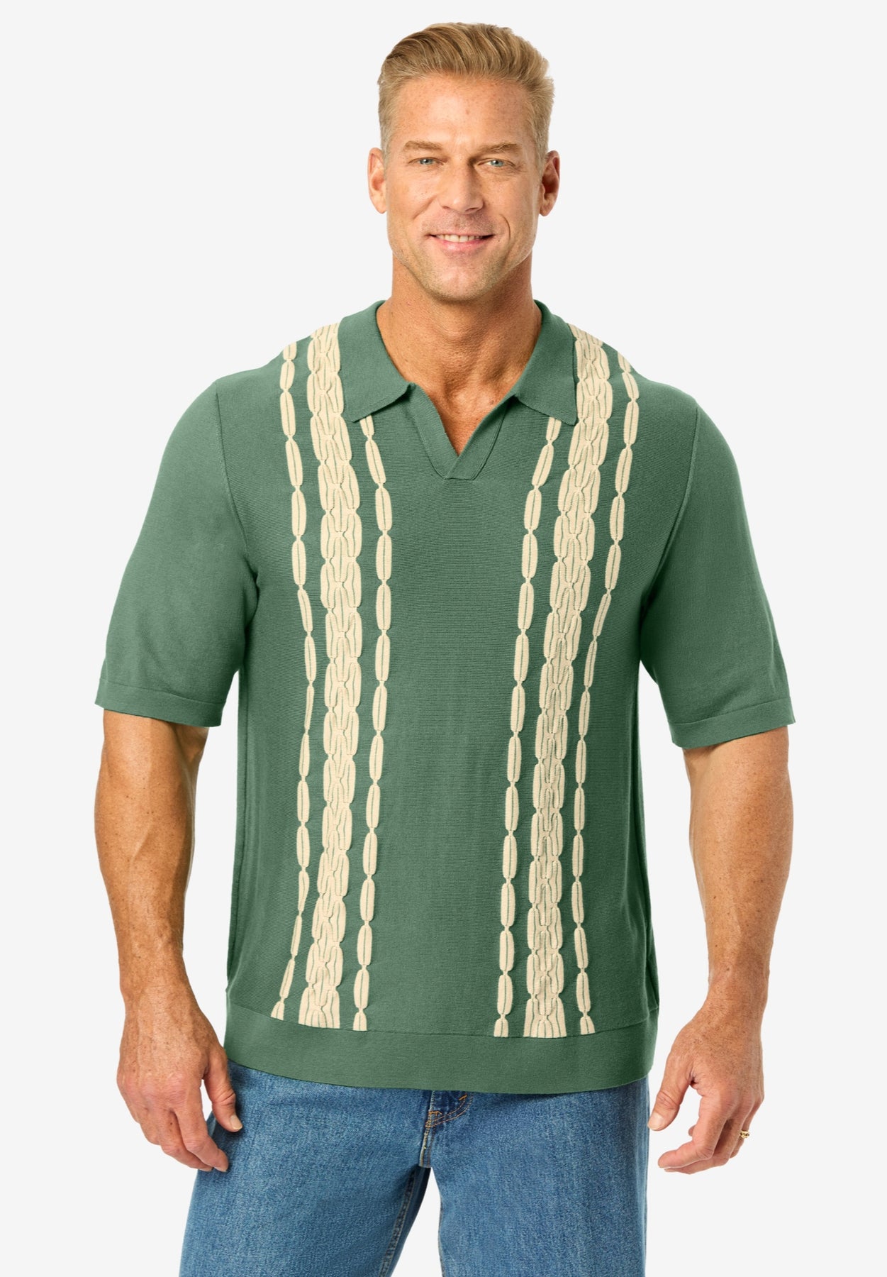 The No Tuck Sweater Polo combines classic comfort with a relaxed, easy-to-wear design. Our lightweight shirt feels as good as it looks, featuring a smooth buttonless placket, a stay-put elastic bottom band, and timeless jacquard detailing. Pair this polo with slacks or jeans for a polished yet relaxed look that is versatile for wherever you go.