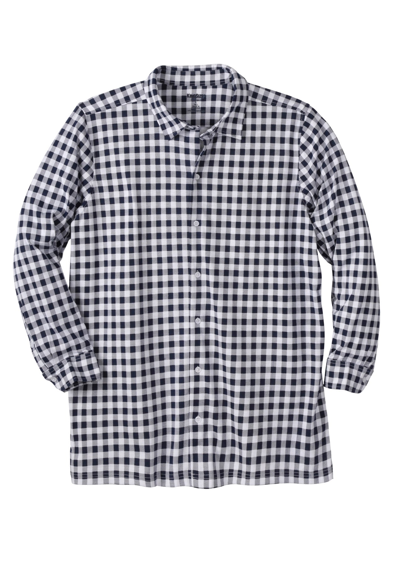 The Stretch Knit Long Sleeve Buttondown is a new way to look and feel great. Made with extra stretch for all-day comfort and an easy fit. Made with a straight hem for clean, streamlined look that will look good with jeans or slacks.