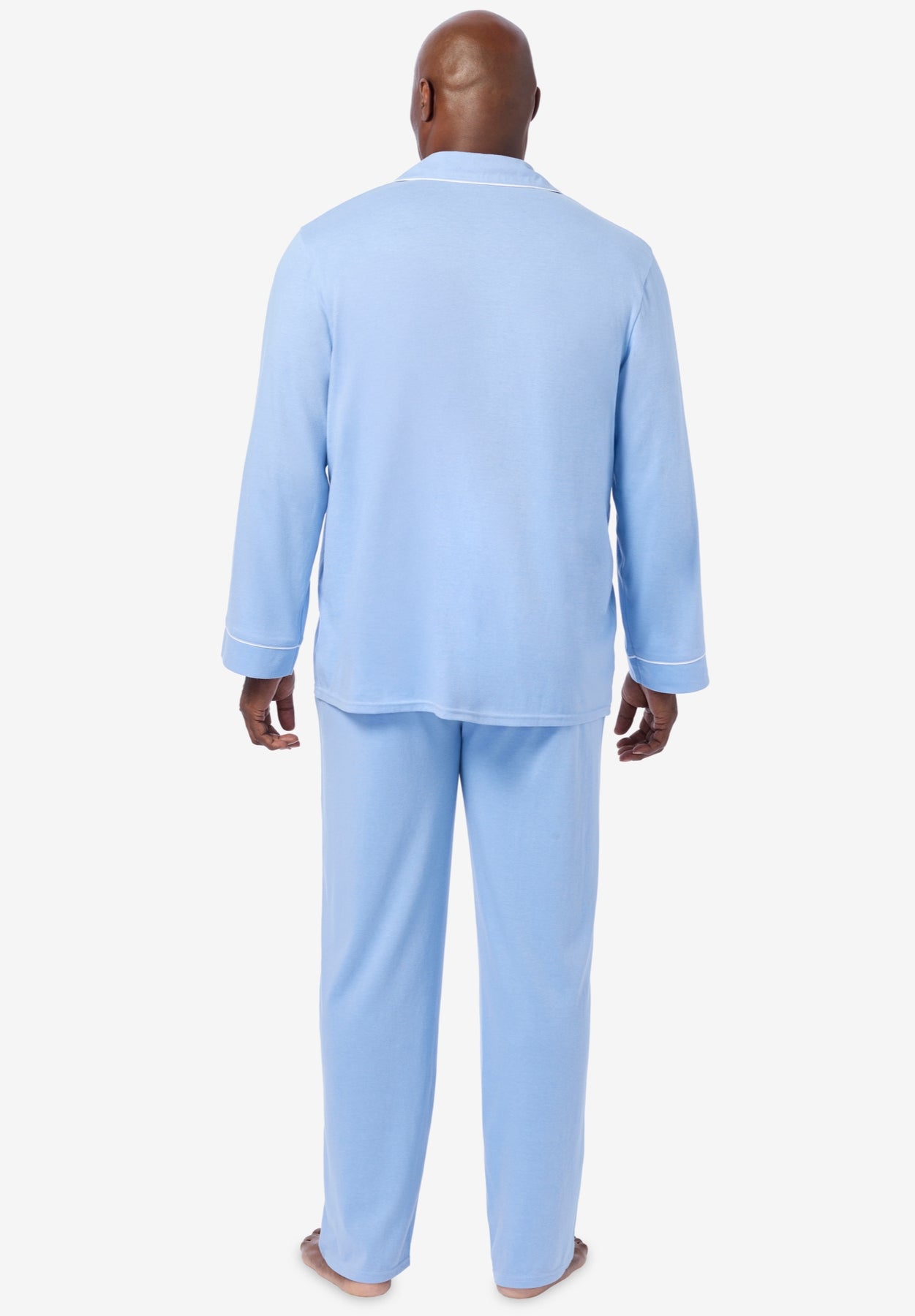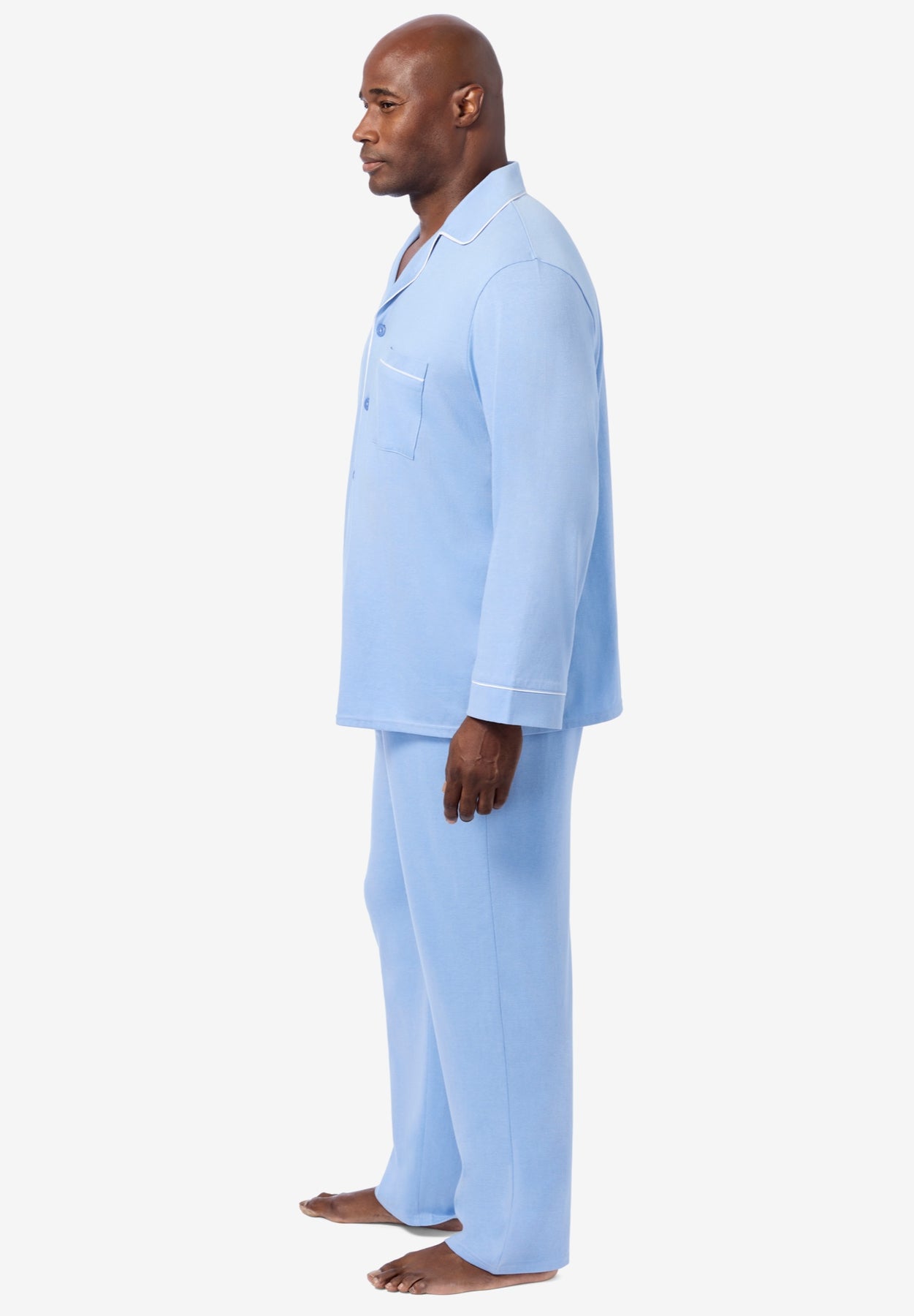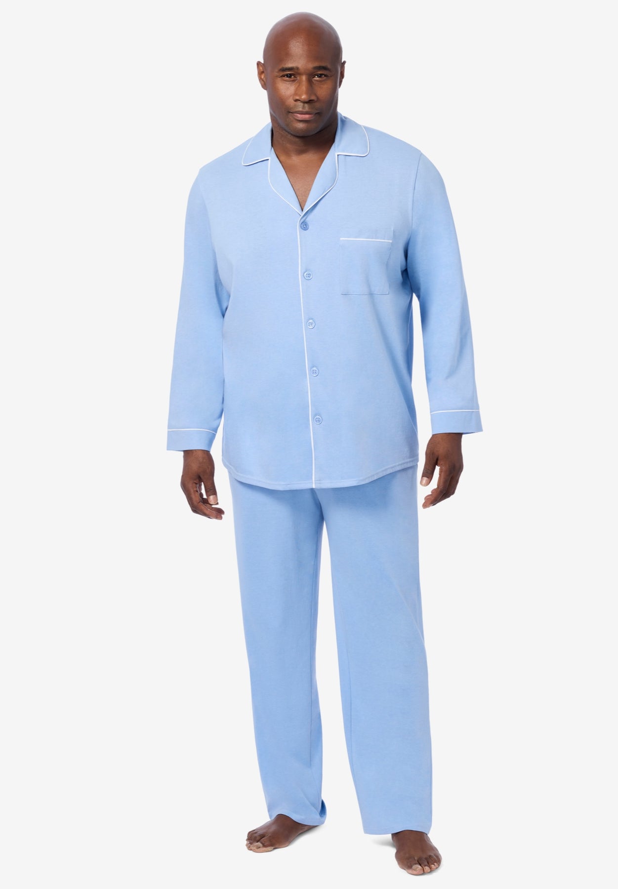 Upgrade your worn pajamas with this Long Sleeve Pajama Set. The shirt has all the classic features of a button down with piping on collar, cuffs, and pocket. The open bottom pants are relaxed fit with a comfortable full elastic waistband and adjustable drawstring.