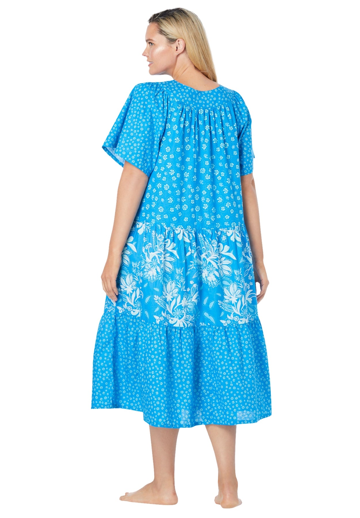 - Relax in style with our beautiful, feminine Tiered Print Lounger featuring a tiered skirt and flutter sleeves.