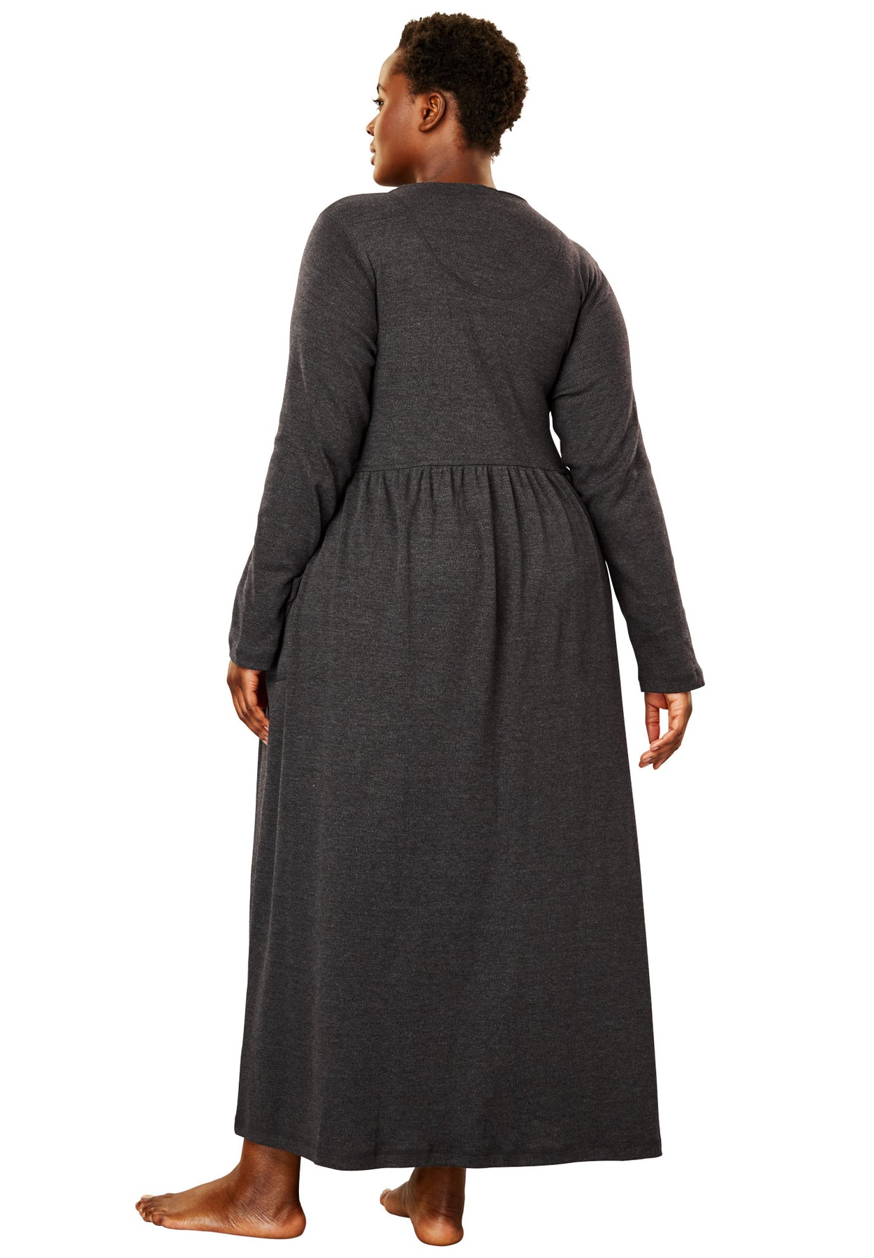 This extra long lounger is made from a soft and comfy knit that feels amazing when draped on the body. Long sleeves and a full sweep keep you nicely covered, and a full snap front allows you to wear it open or closed. Throw this lovely piece on when you're ready to kick back and relax.