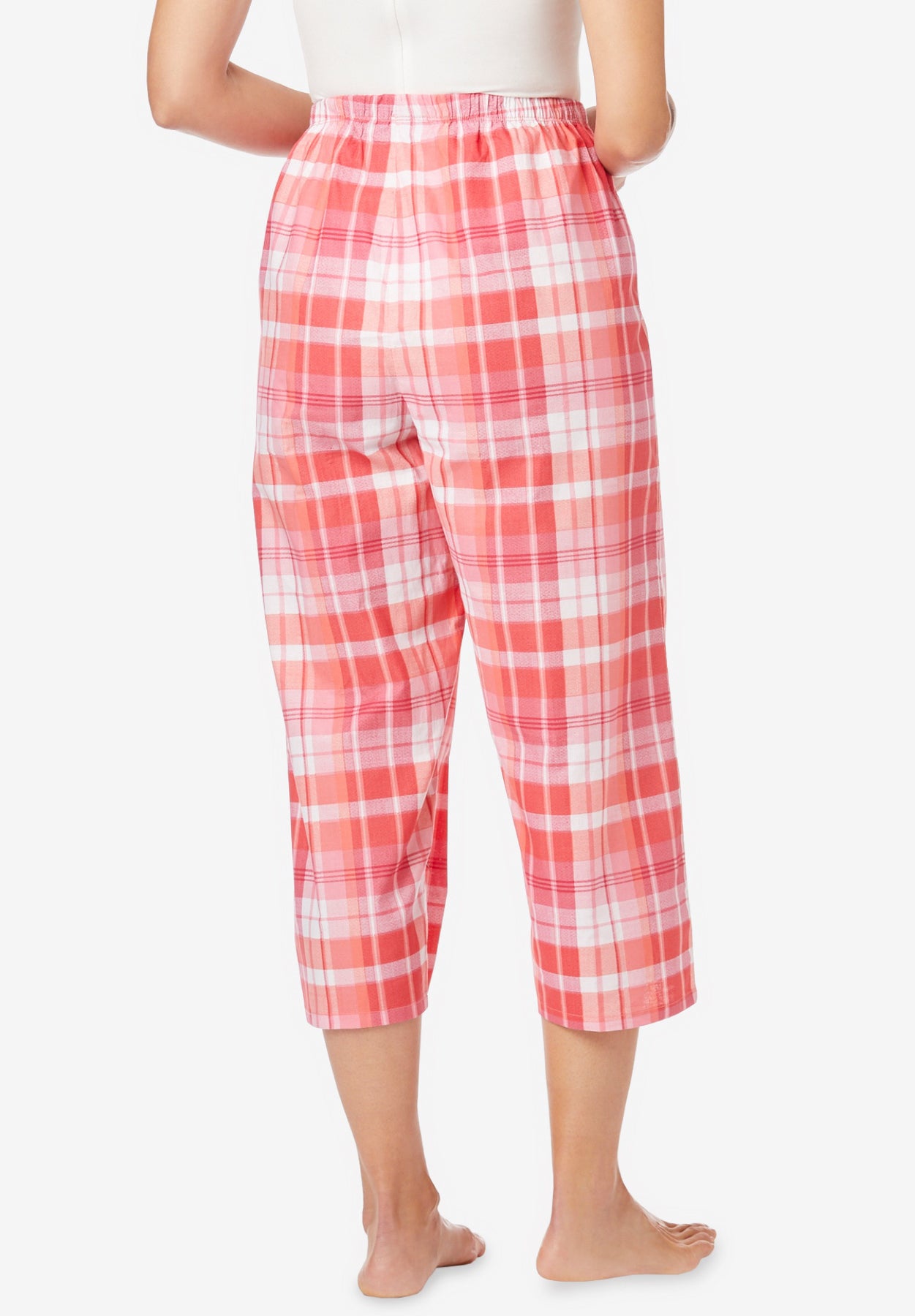 These woven cotton pajama capri's come with a wide, cropped leg for ultimate comfort. An elastic waist provides a perfect fit every time without pinching. Comes with a pretty satin tie at waist and straight bottom hem with 20" inseam.