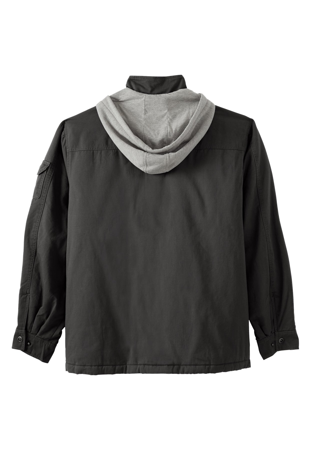 Our lined Multi-Pocket Twill Utility Jacket by Boulder Creek® is perfect for fall. This lightweight style features nine pockets with snap button closure. This includes: three chest pockets with a zip close pocket, front flap pockets with side entry, and a small pockets on each sleeve. Now, no item gets left behind, plus you can enjoy the day hands-free. A removable hood provides extra coverage when needed.