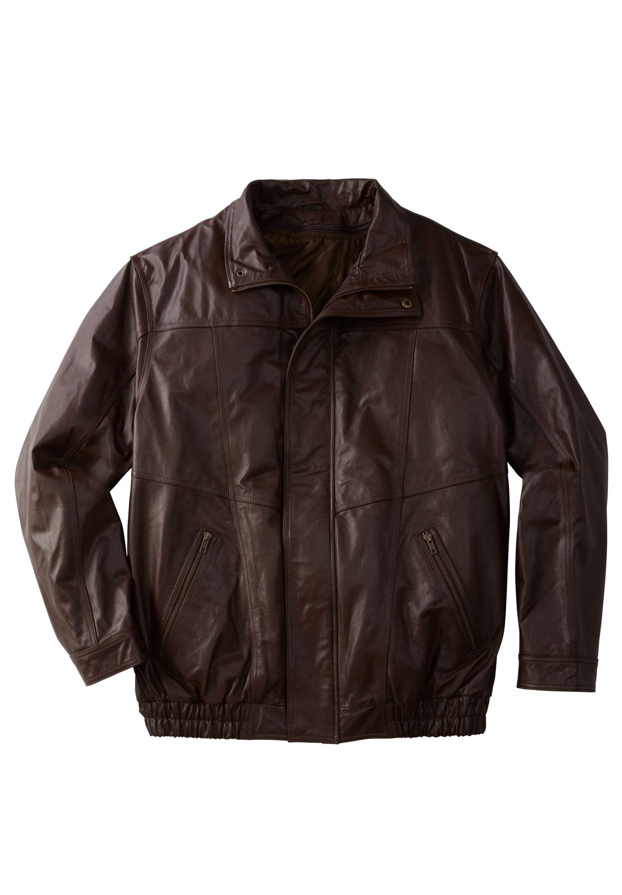 You get to be the Top Gun with our insulated leather bomber jacket. Zip front with hidden snap storm flap. Two vertical zip pockets. Cool attitude not included.