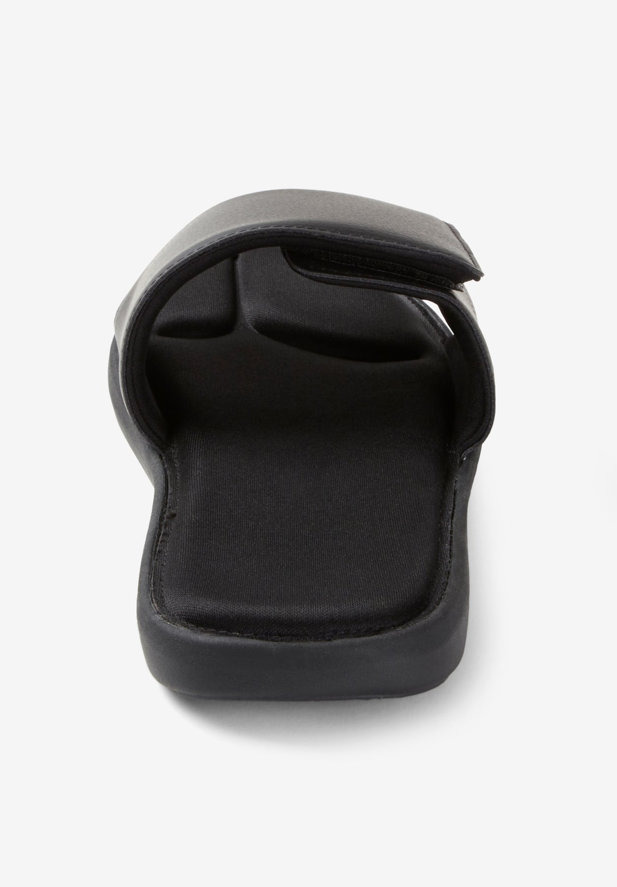 Just slip on and go! Our memory foam slide sandals are conveniently easy to slide on and off. Made with a single adjustable strap allowing you to get personalized fit.