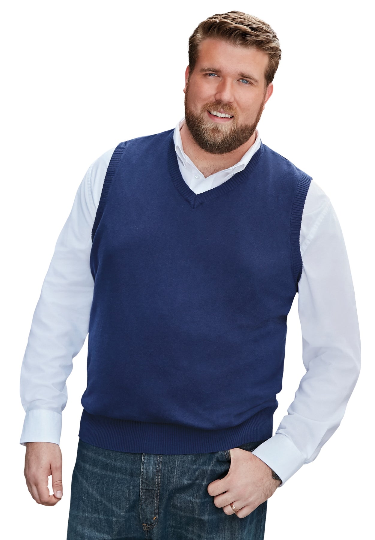 Our lightweight V-neck sweaters look handsome over our sport shirts and dress shirts and won't overheat you.