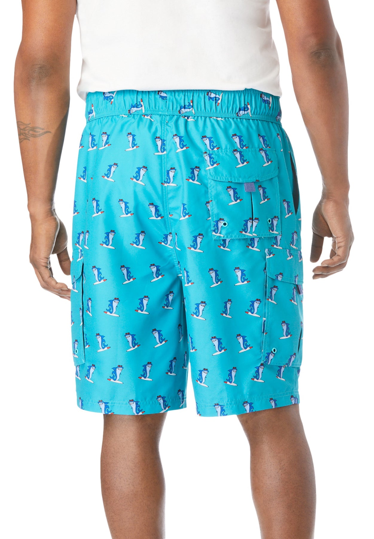 Our specialty 8" printed cargo swim trunks for big guys, exclusively from KS Island™. Made with side slant pockets with two side cargo pockets and rear flap pocket, all with adjustable self-adhesive tab closure to keep small personal items secure. Also made with a full elastic waist with an adjustable drawstring for a comfortable fit.