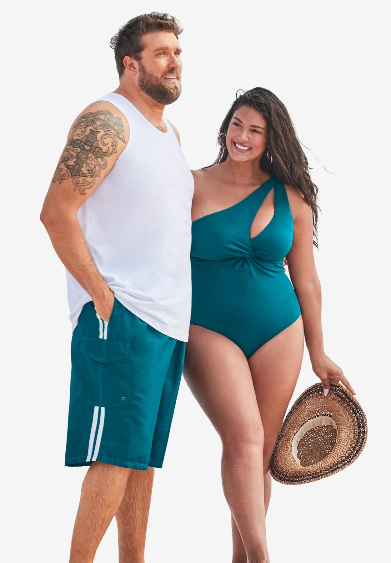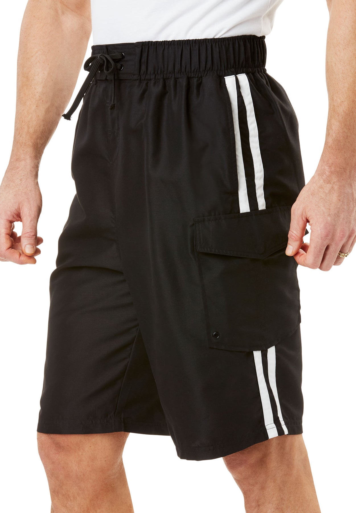 Go from beach to boardwalk in the 10" Double Stripe Swim Board Shorts. They feature roomy side cargo pockets and a comfortable full elastic waistband so you can move with ease.