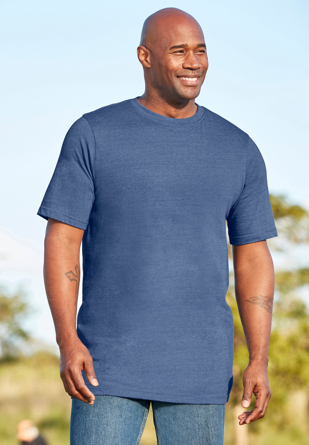 A trusty wardrobe staple you can get in an assortment of colors. You can always count on this heavyweight longer-length crewneck to be soft and durable for a long-lasting fit. And with its extra 4" length, you'll also get the all-day coverage you need.