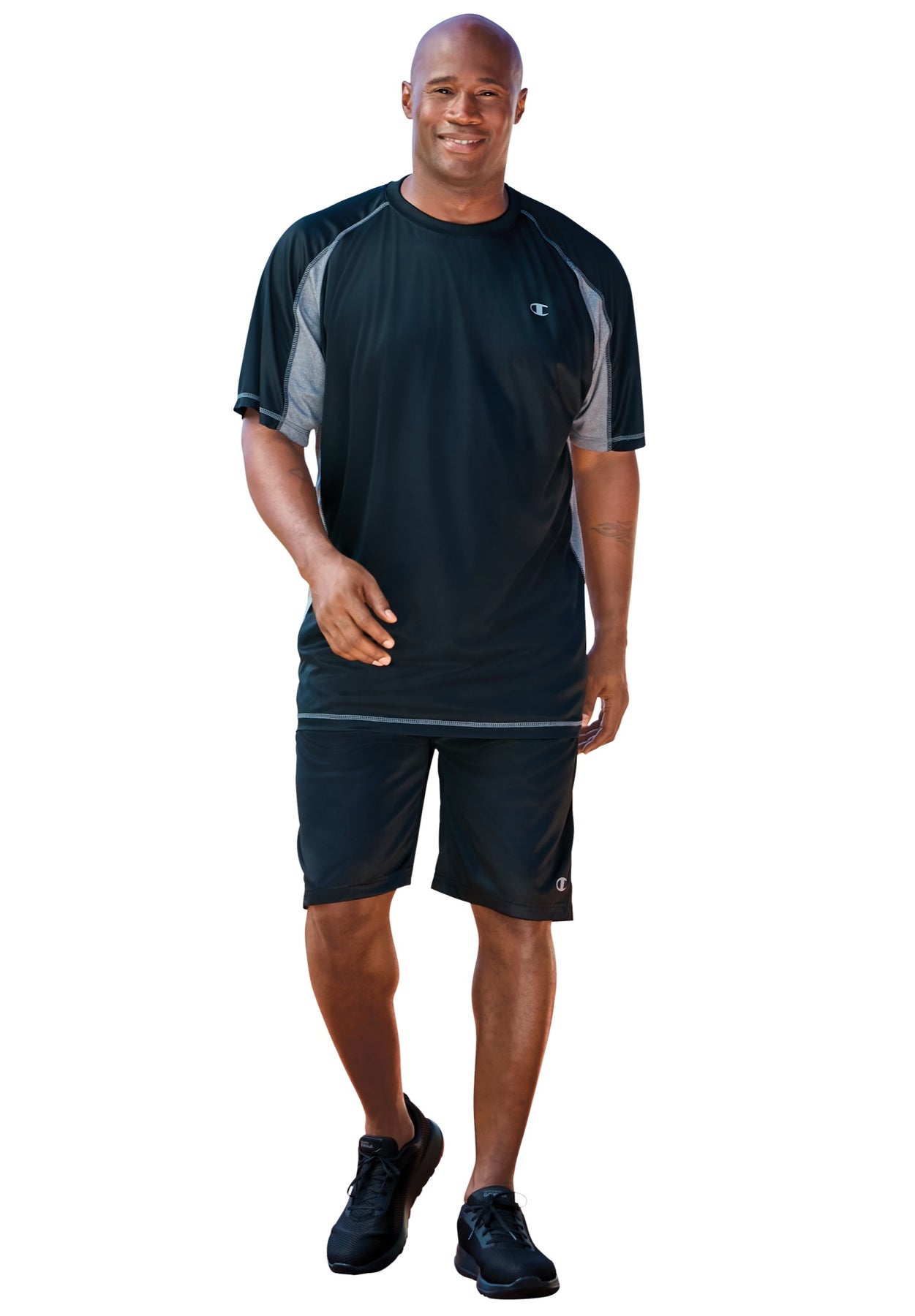 If you just want a comfortable, athletic leisure look, the Vapor® Colorblock Performance Tee combines the quality and durability of Champion® with the perfect fit of King Size. Overall, it's versatile performance tee that's perfect for reaching your daily step count and tackling long days on your feet.